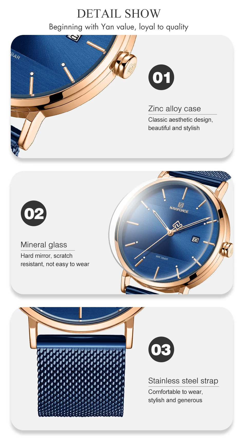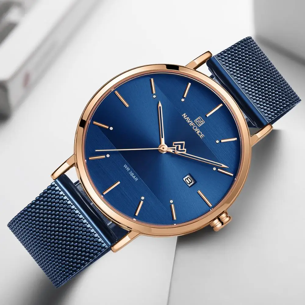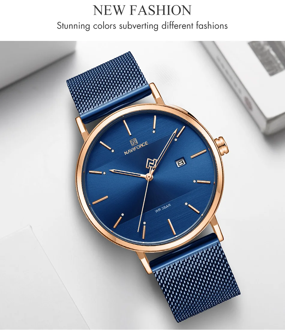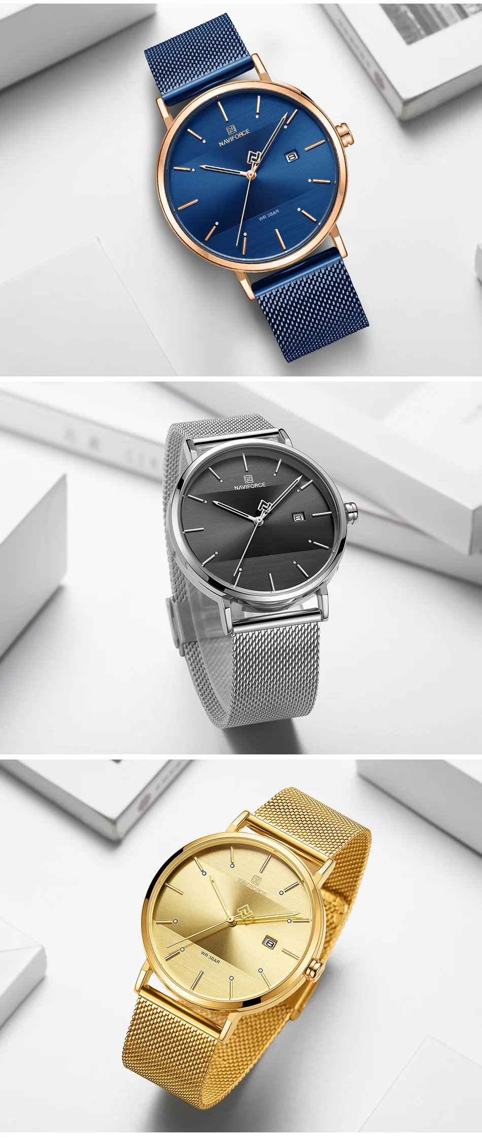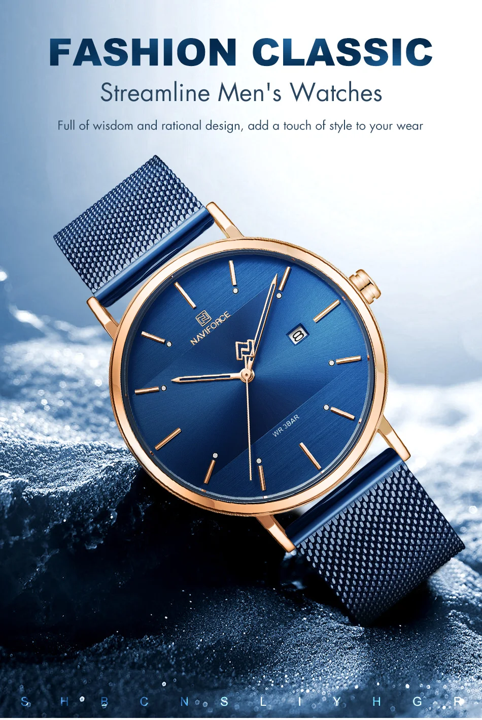 Часы наручные NAVIFORCE Мужские кварцевые, брендовые модные спортивные водонепроницаемые с сетчатым браслетом из нержавеющей стали