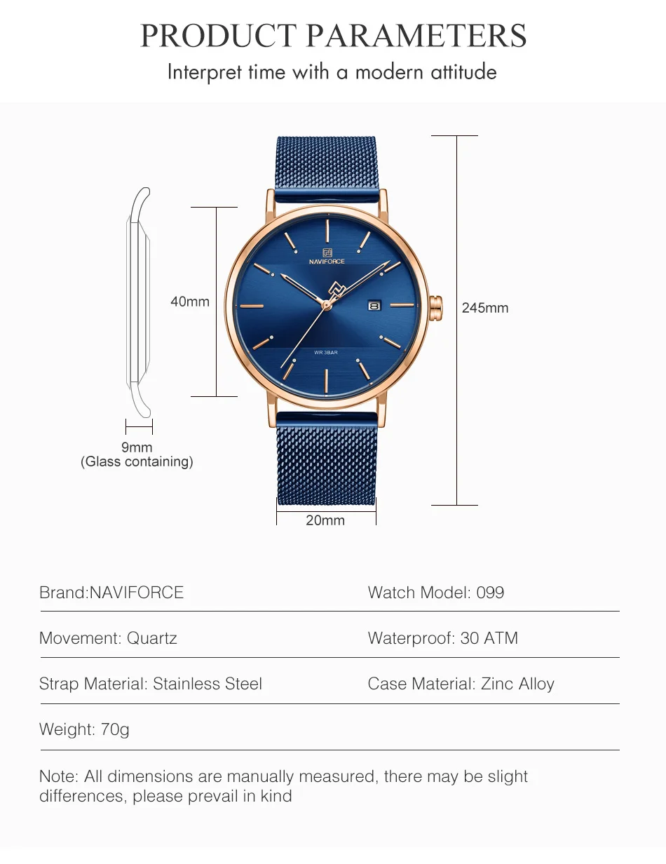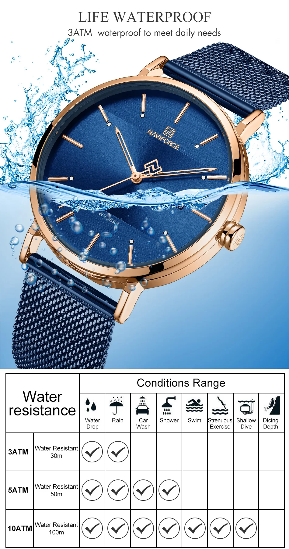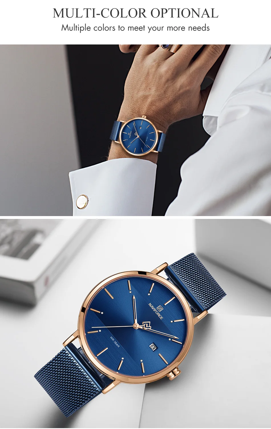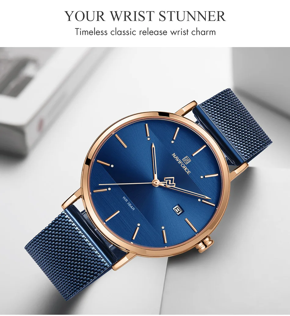 Часы наручные NAVIFORCE Мужские кварцевые, брендовые модные спортивные водонепроницаемые с сетчатым браслетом из нержавеющей стали