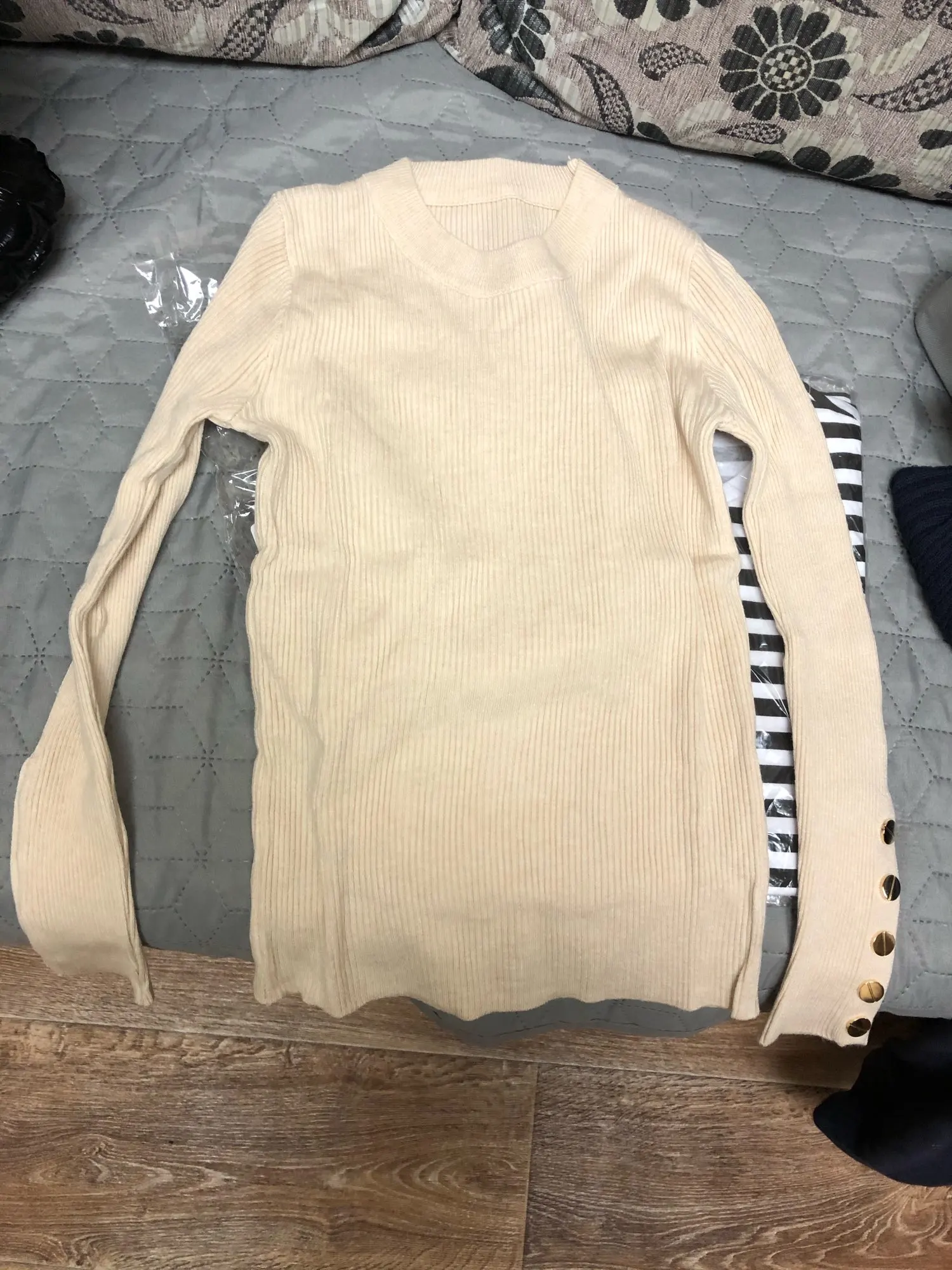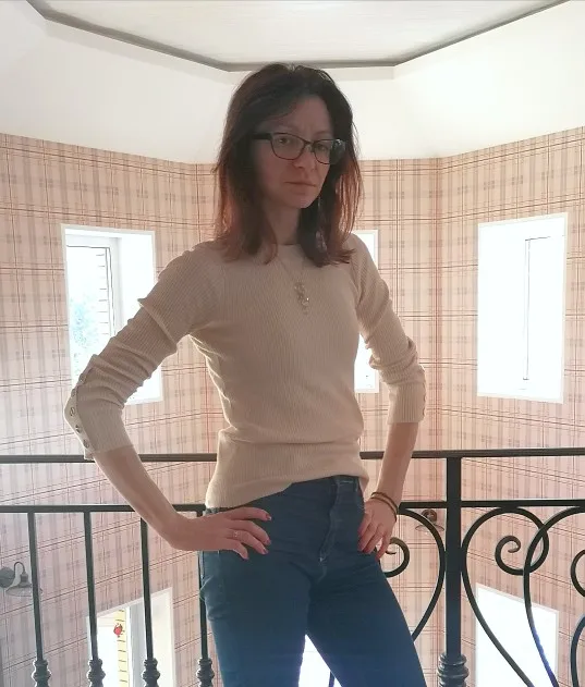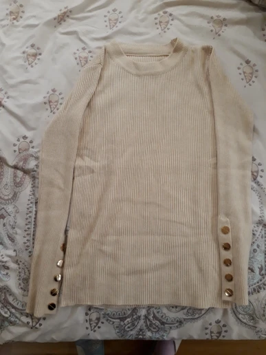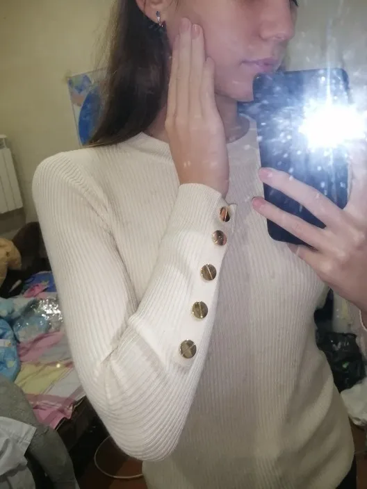 Пуловер сделан очень качественно, ткань очень приятная, мягкая, тёпленькая. Нитки нигде не торчат, все хорошо пошито, пуговицы-кнопки выполнены хорошо и не выглядят дёшево. Единственный минус - мне всё-таки кажется, что немного короткий шов по плечу от воротника - всего 7см, в результате чего рукава коротковаты. Хотя длина самих рукавов - 48см, было бы нормально, если бы он не начинался у меня на плече. Мои параметры: ширина плеч 37см, рост 162см. Продавец отправил на следующий день. Получила через 23 дня уже. Трек отслеживался.