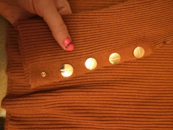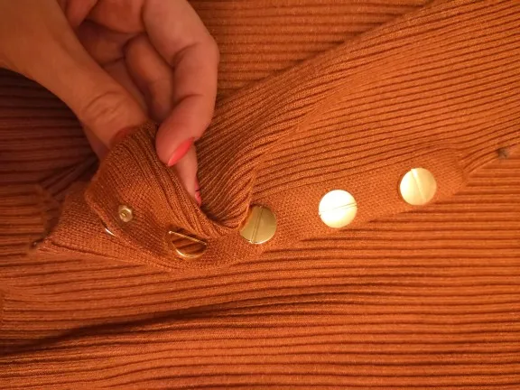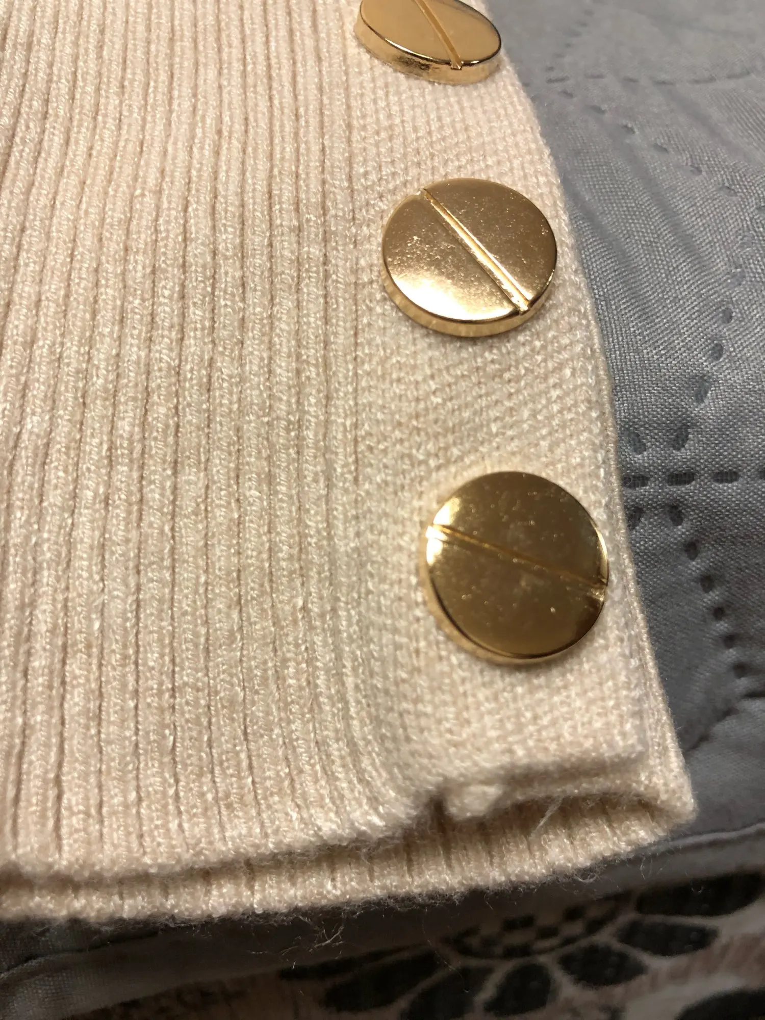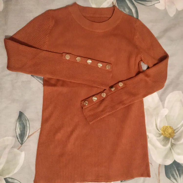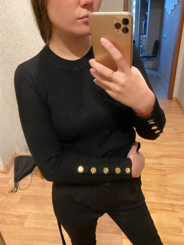 Хорошая кофточка, пришла за 12 дней, ношу размер xs - села отлично, все кнопки без брака. Единственное мне показалось что цвет в реальности темнее чем на фото. И рукава пошиты странно, на левой руке разрез вниз, на правой вверх