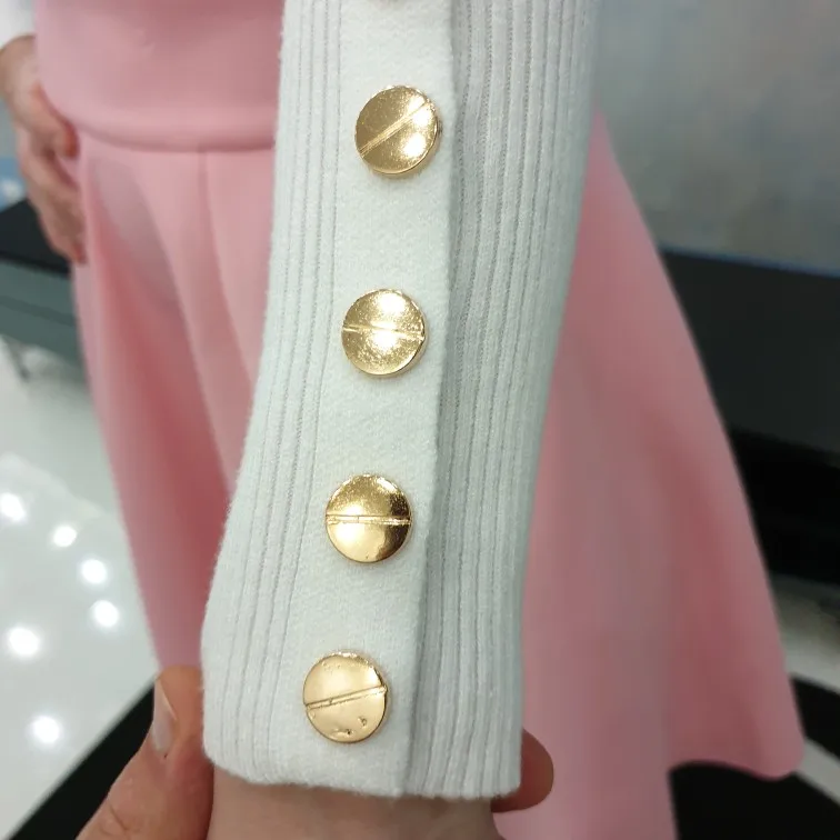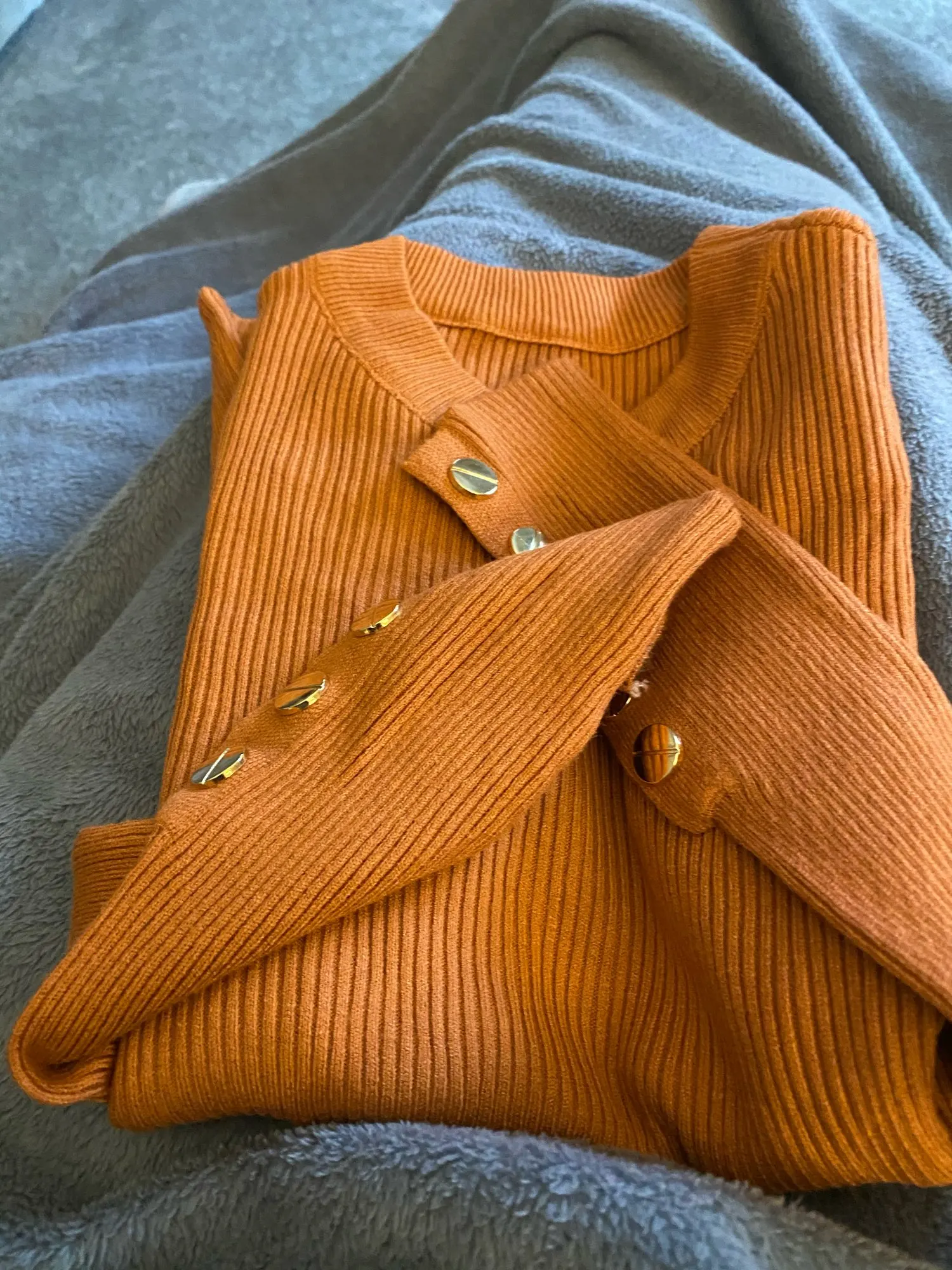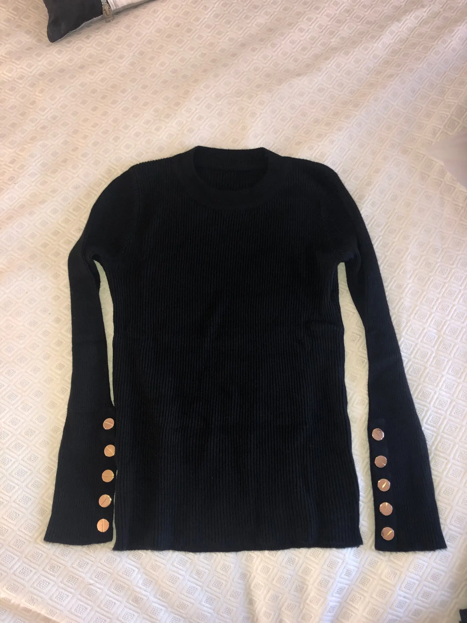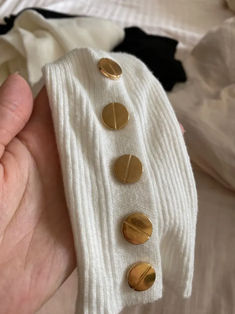 Хорошая кофточка, пришла за 12 дней, ношу размер xs - села отлично, все кнопки без брака. Единственное мне показалось что цвет в реальности темнее чем на фото. И рукава пошиты странно, на левой руке разрез вниз, на правой вверх