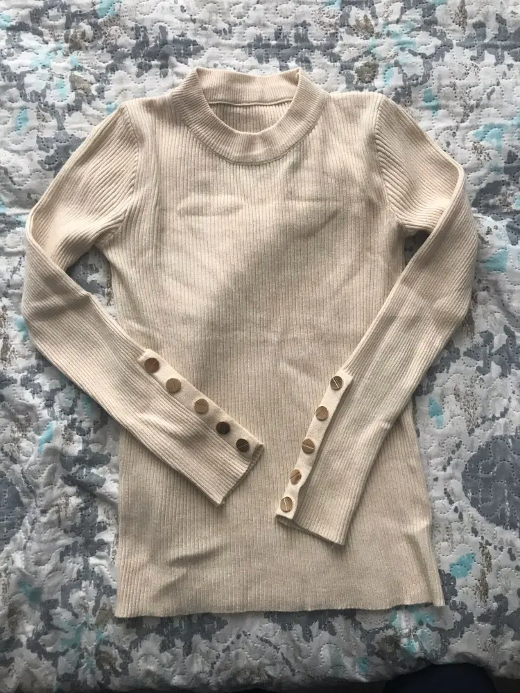 Мне немного не понравился цвет, он в желтизну, думала будет более бежевый. А так кофта хорошая. На рост 166 длина рукава впритык, даже маловато