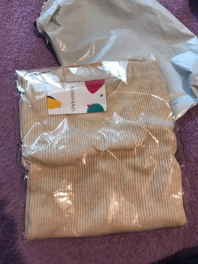молниеносная доставка ! свитер тоненький . брала на Али похожей модели - плотный ,а этот совсем тоненький . Очень красивый . 92/73 вошла нормально