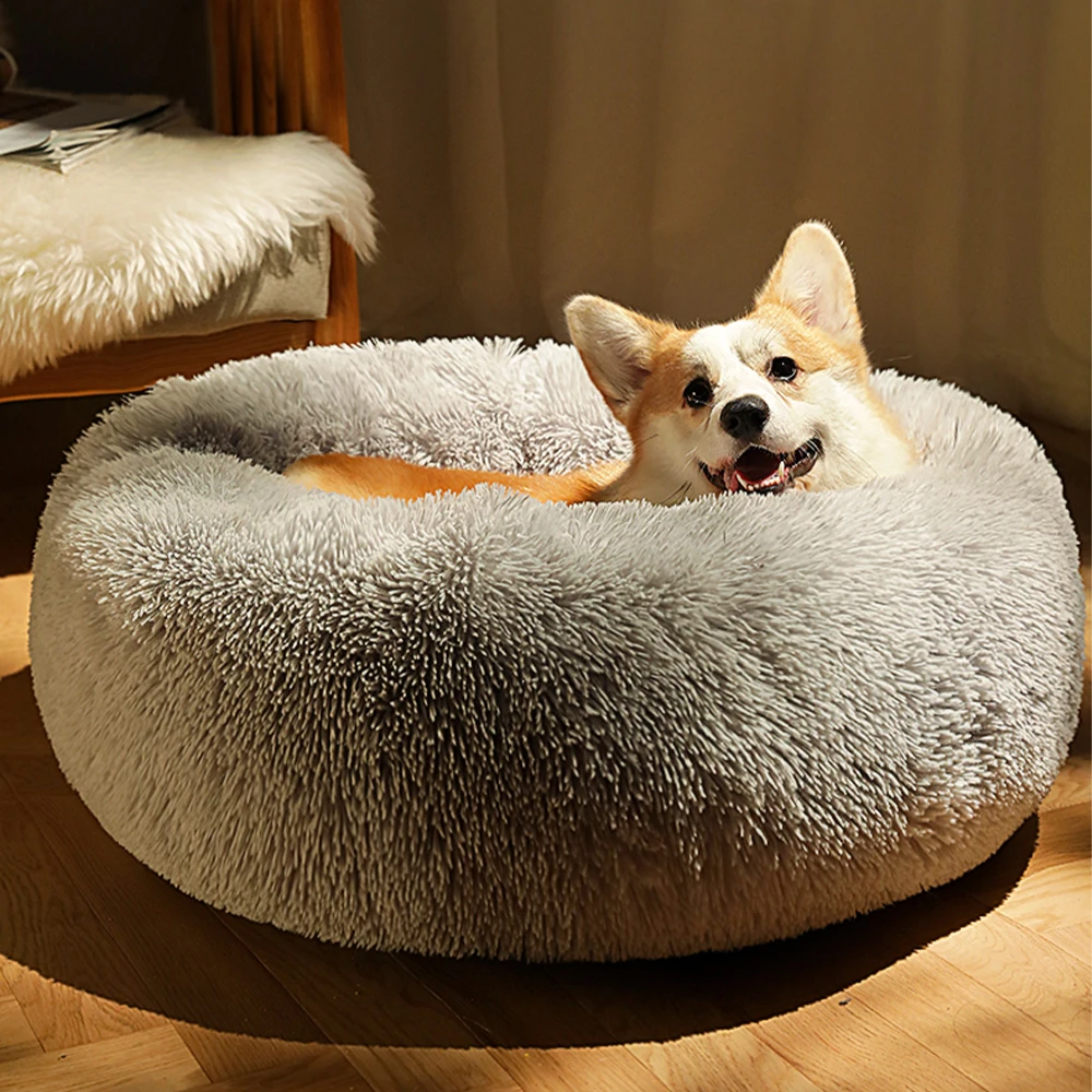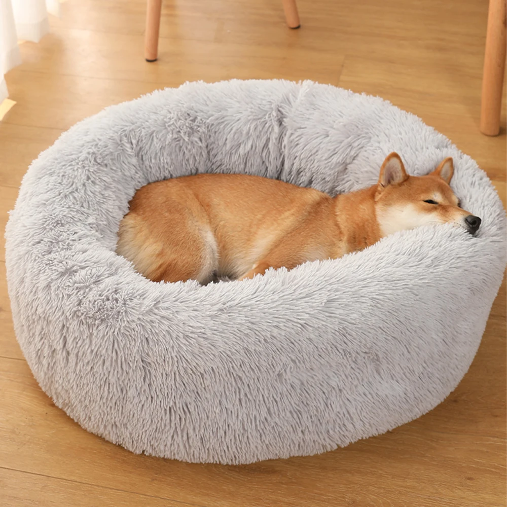Роскошная мягкая плюшевая кровать для собак, круглая кровать, спальный мешок, кровать-диван для кошек и щенков, зимняя теплая кровать, подушка для домашних питомцев, превосходный комфорт