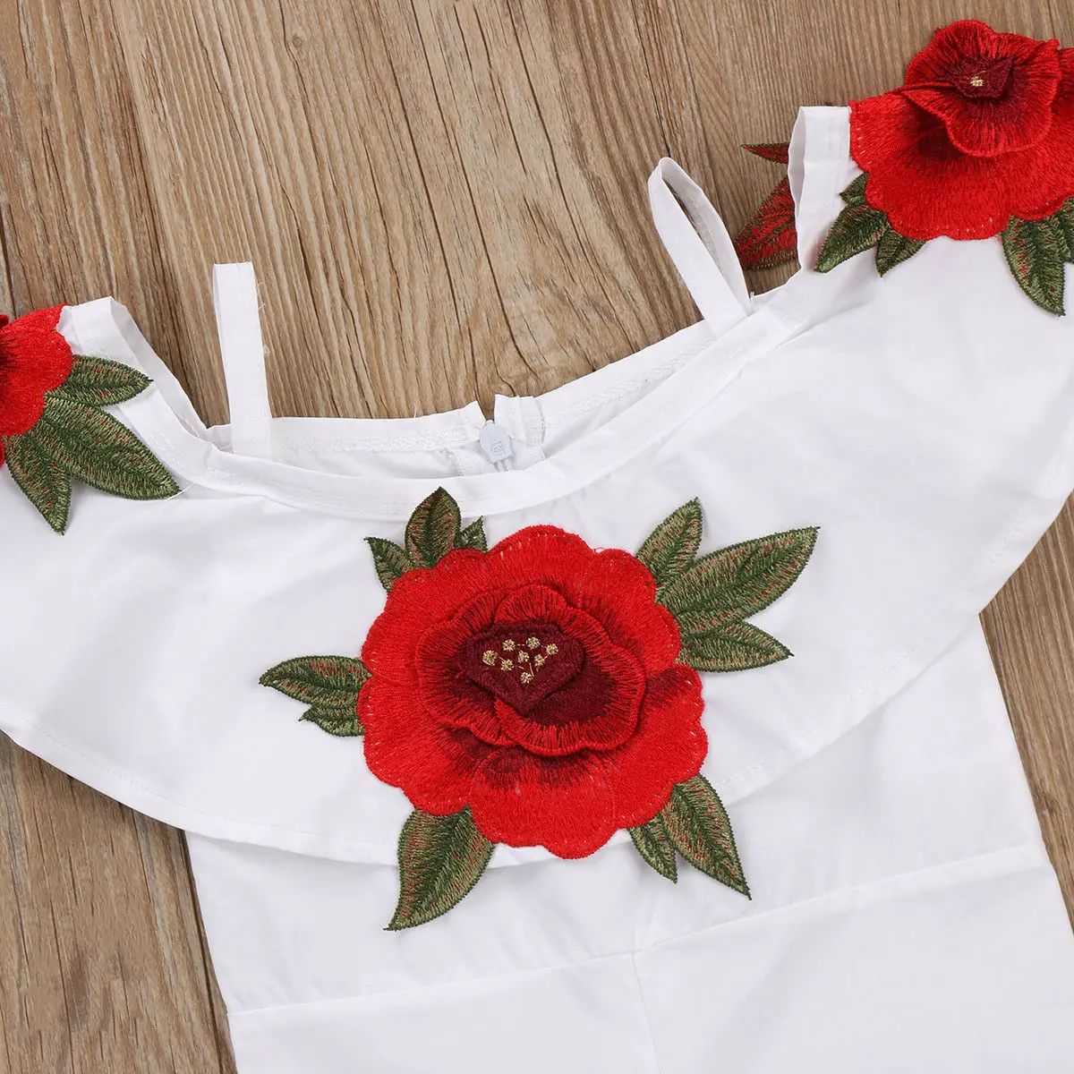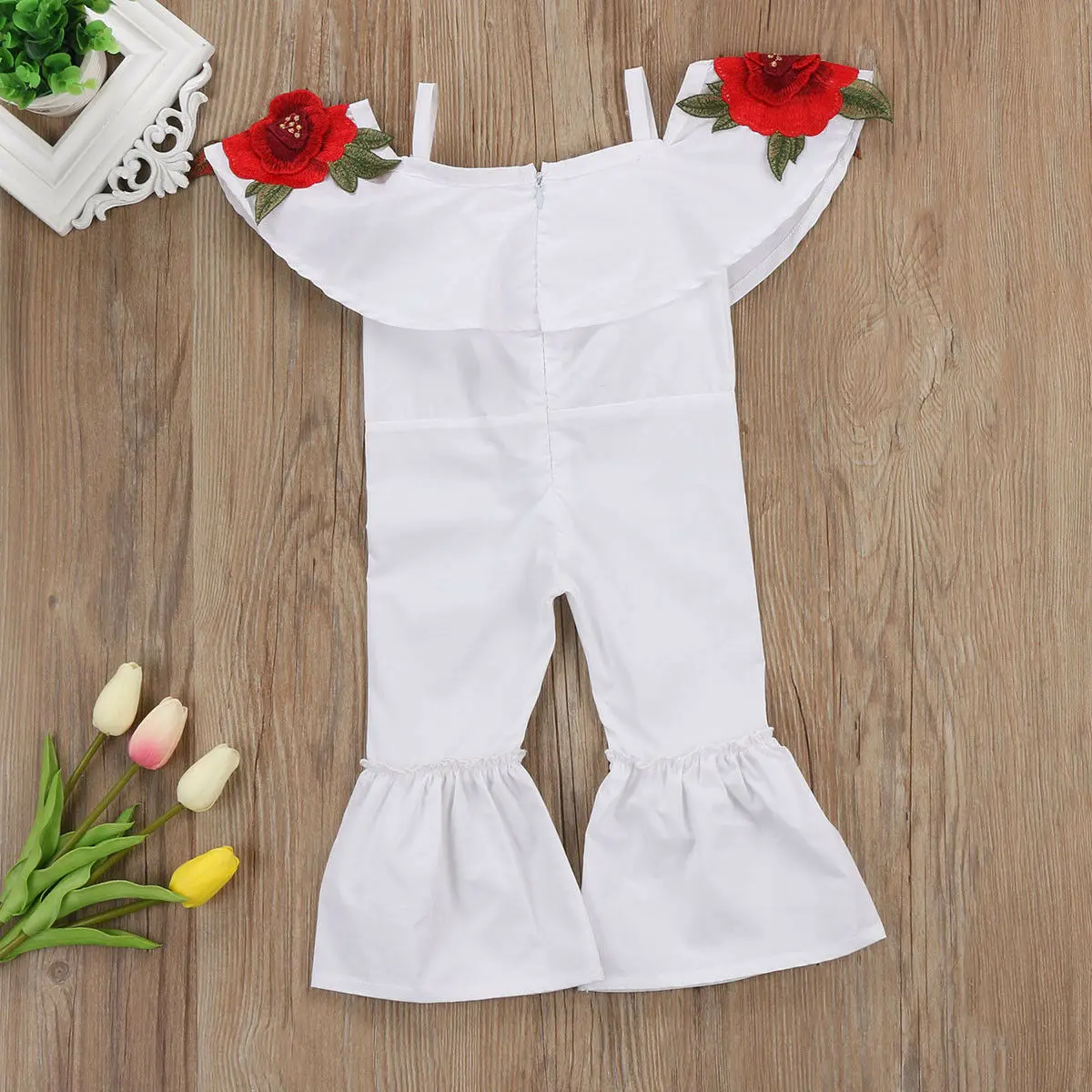 Новый Модный комбинезон с принтом розы для девочек; Длинные штаны!