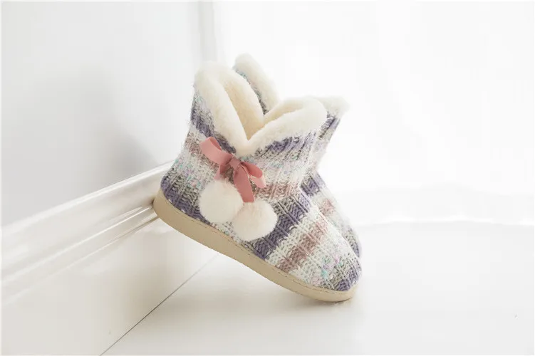 Suihyungновые женские ботильоны; Зимняя теплая Домашняя обувь; Цвет черный, белый; Хлопковые плюшевые пинетки; Женские толстые кашемировые ботинки с бантом; Botas