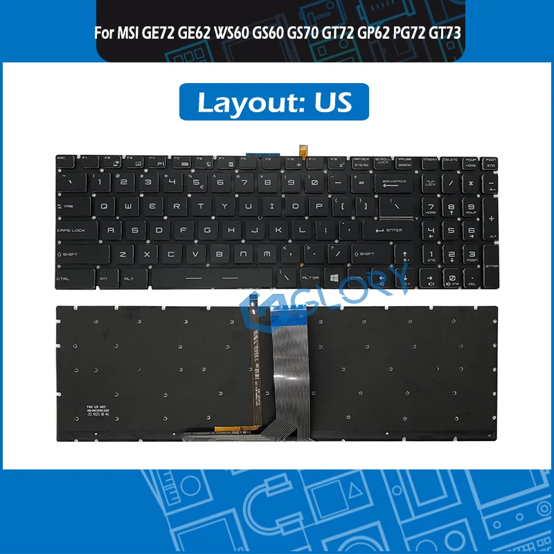 Новая английская клавиатура с подсветкой для MSI GE72 GE62 WS60 GS60 GS70 GT72 GP62 GP72 GT73VR GS72 GL62VR замена клавиатуры