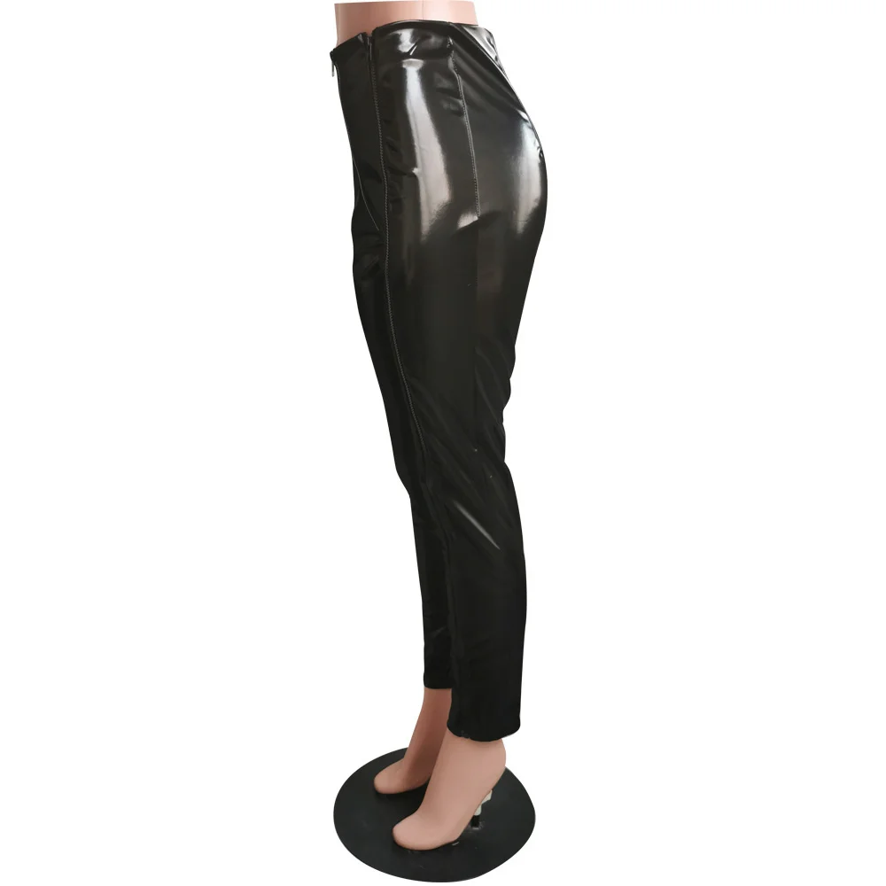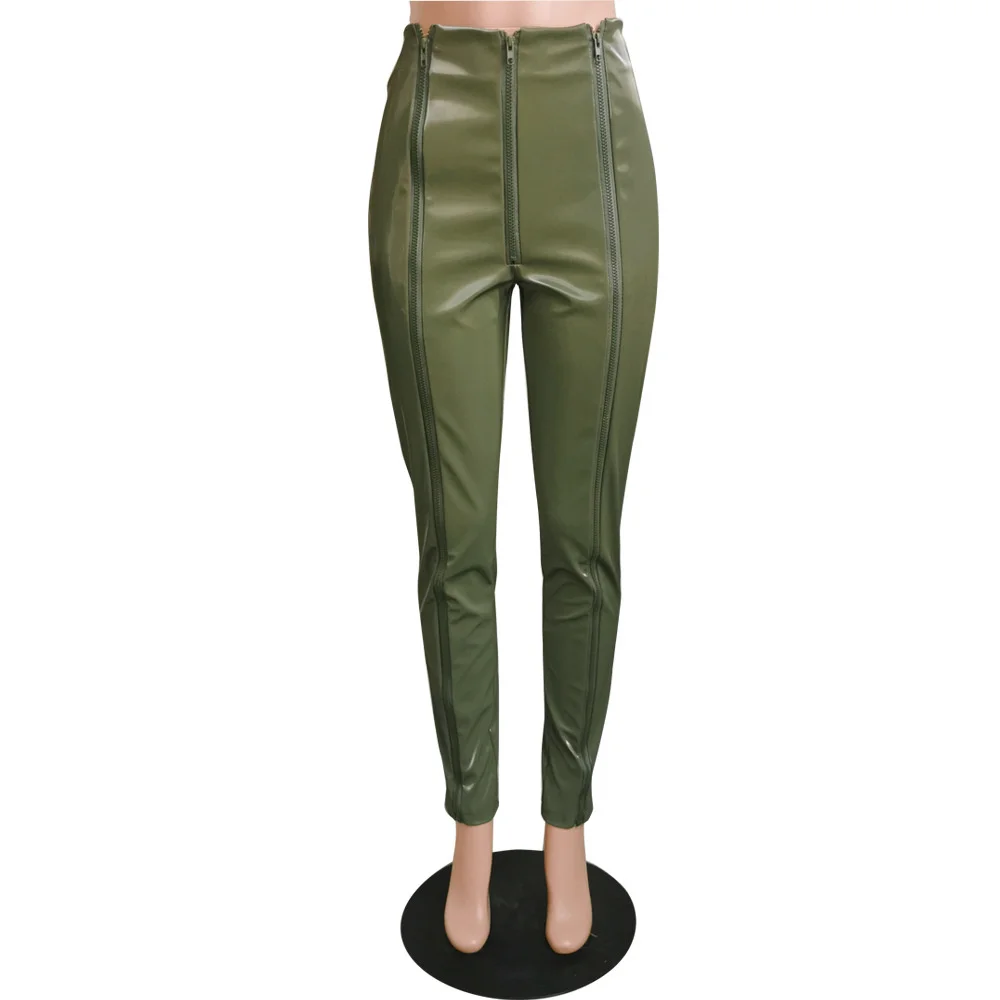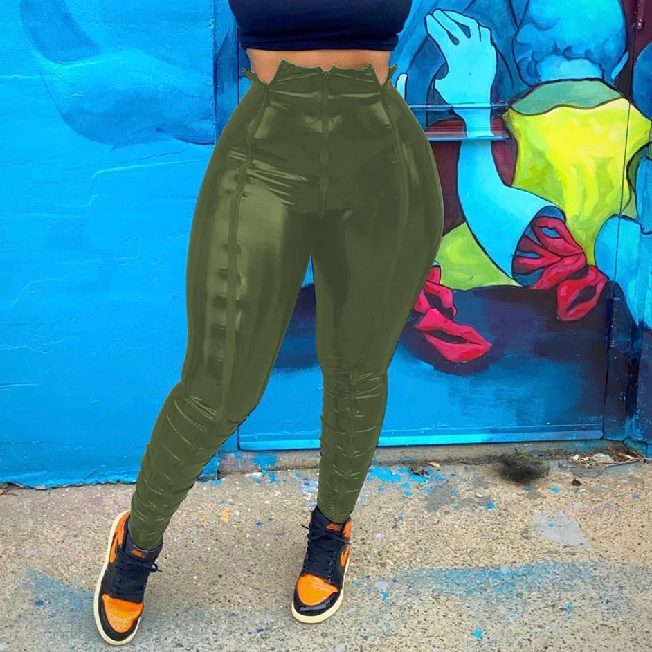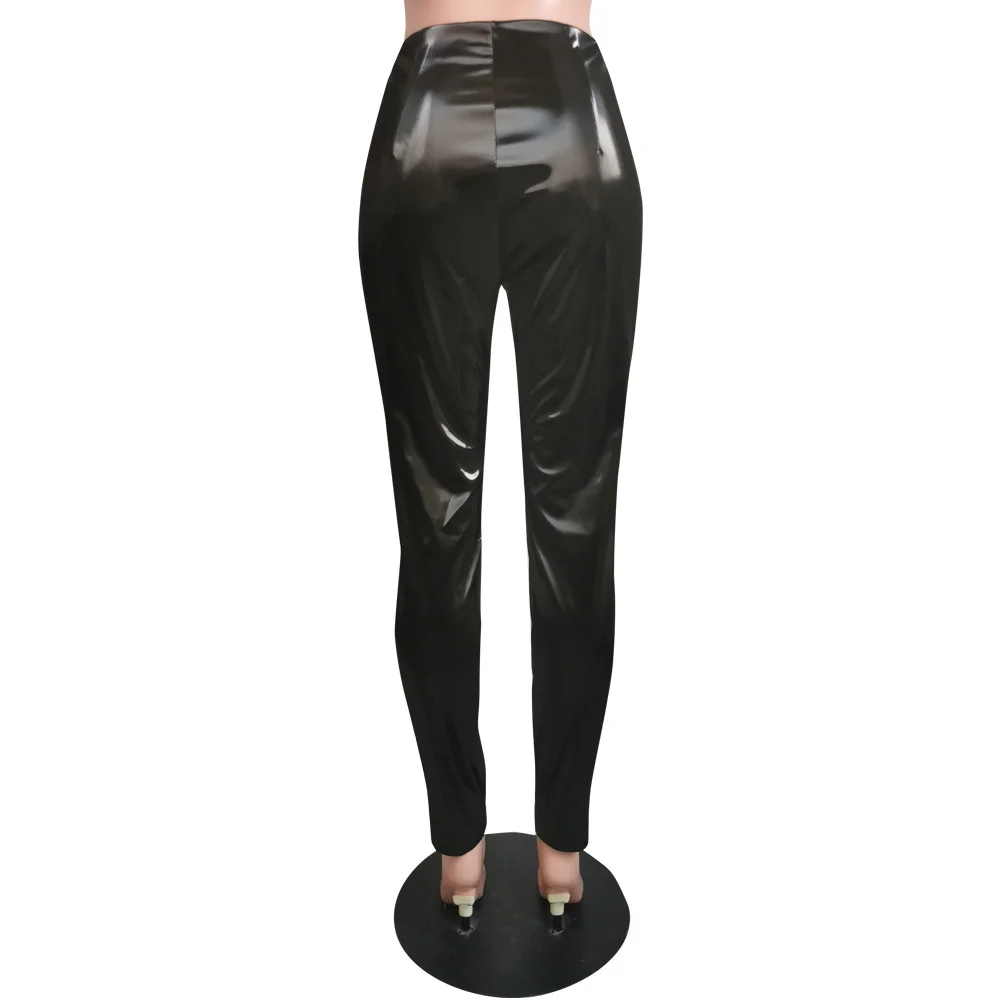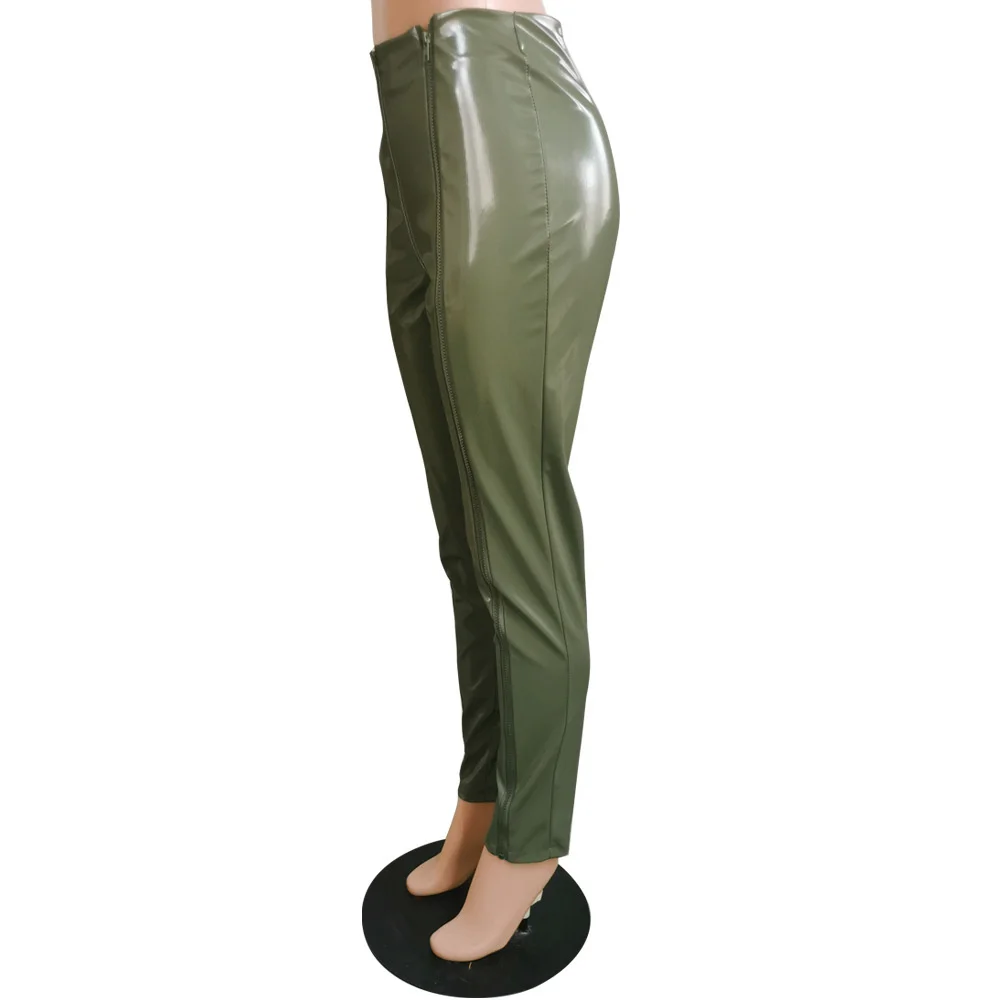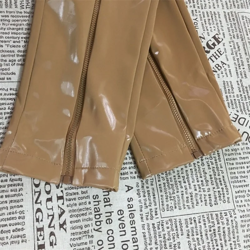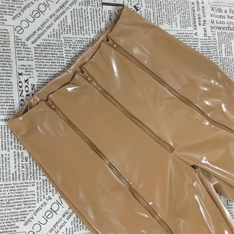 Брюки-карандаш женские однотонные из искусственной кожи, модные пляжные штаны на молнии, повседневные облегающие штаны, на лето