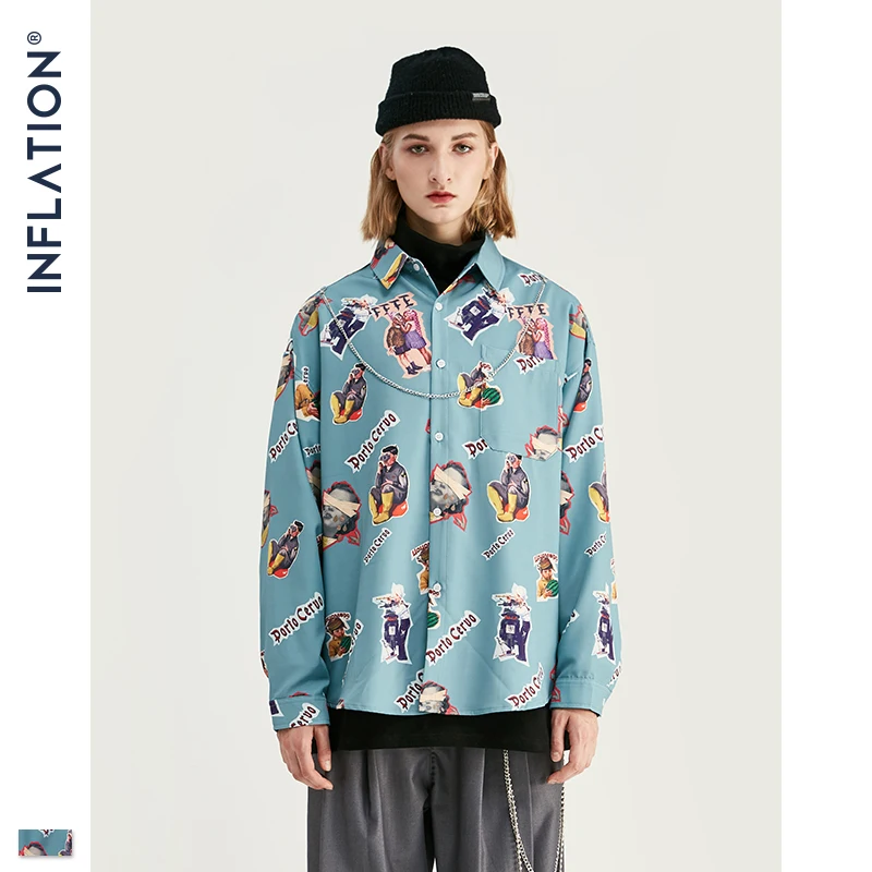 Инфляция Мужская гавайская рубашка мужская повседневная забавная печатная рубашки в уличном стиле с длинными рукавами 2019 осень свободная брендовая мужская рубашка 92144W