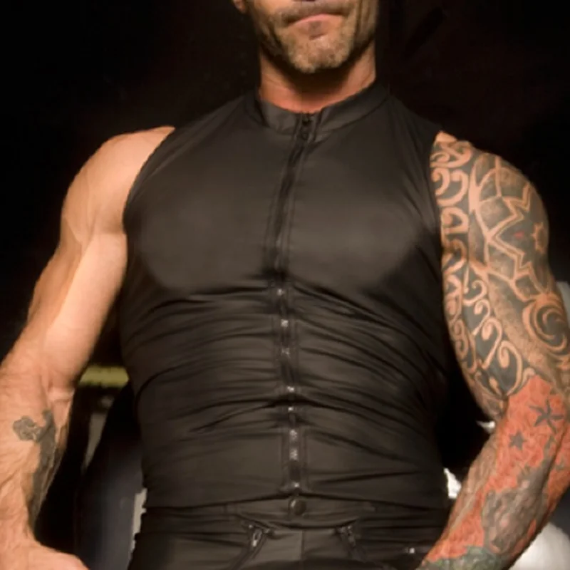 Пикантная Мужская Черная майка из искусственной кожи на молнии без рукавов, майка из ПУ, жилет, мужское нижнее белье для геев, белье без рукавов
