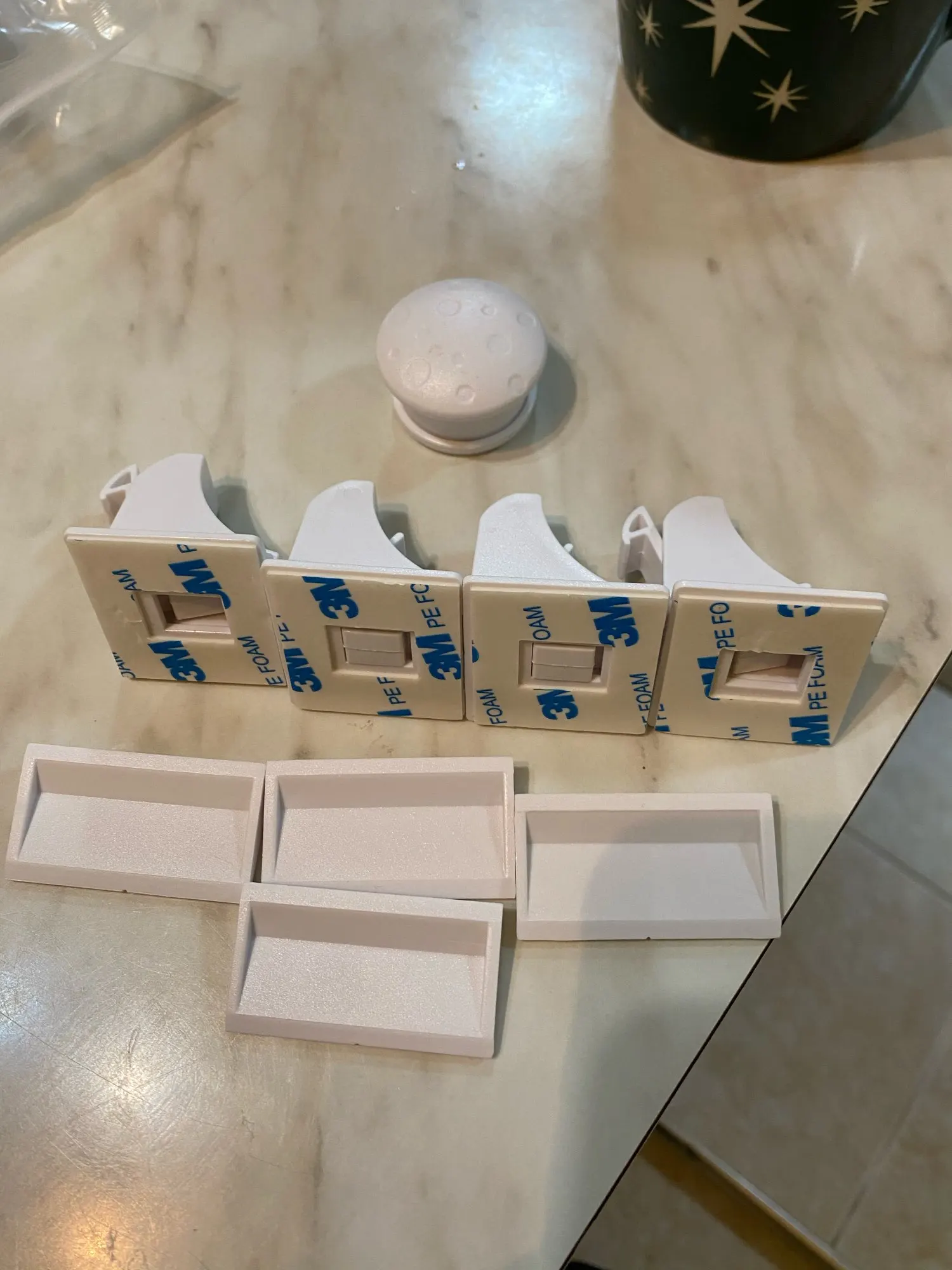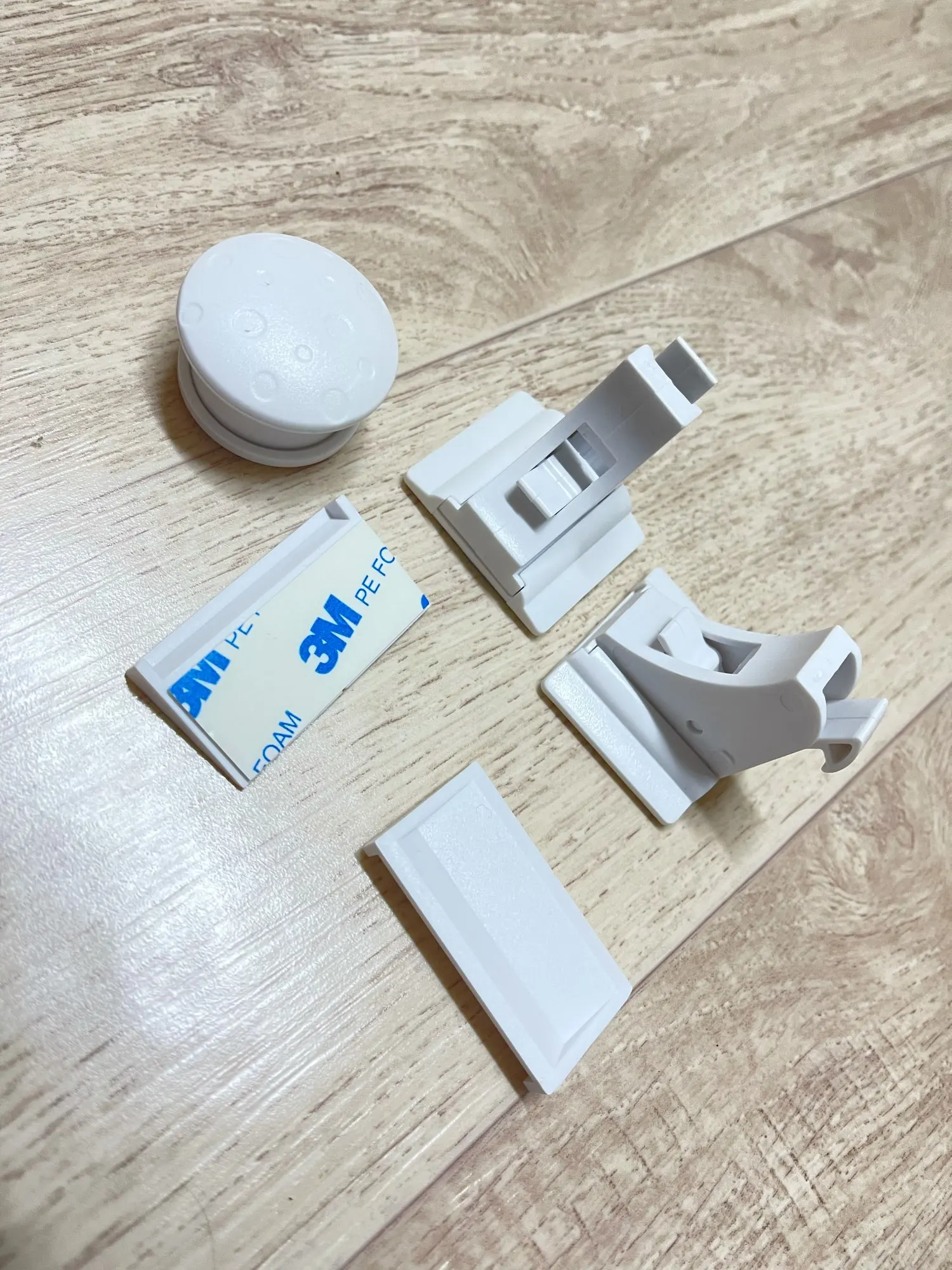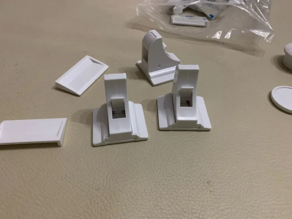 Отличный замок, работает как надо, дочка перестала гулять по шкафам, главное хорошо обезжирить поверхность куда будете клеить, ну и точно примерить где что должно быть приклеено.