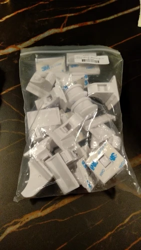 Замочки неплохие. Пластик крепкий. Клеевой слой не на всех поверхностях крепко держится. Двусторонняя клейкая лента при усилии может и от самого замка отлипнуть. Поэтому ленту сняли и посадили замки на супер-клей. Получила заказ в С-Пб через 7 дней. Рекомендую к покупке, если вам надоели чужие поползновения по вашим шкафчикам и ящикам.