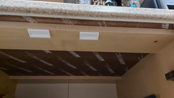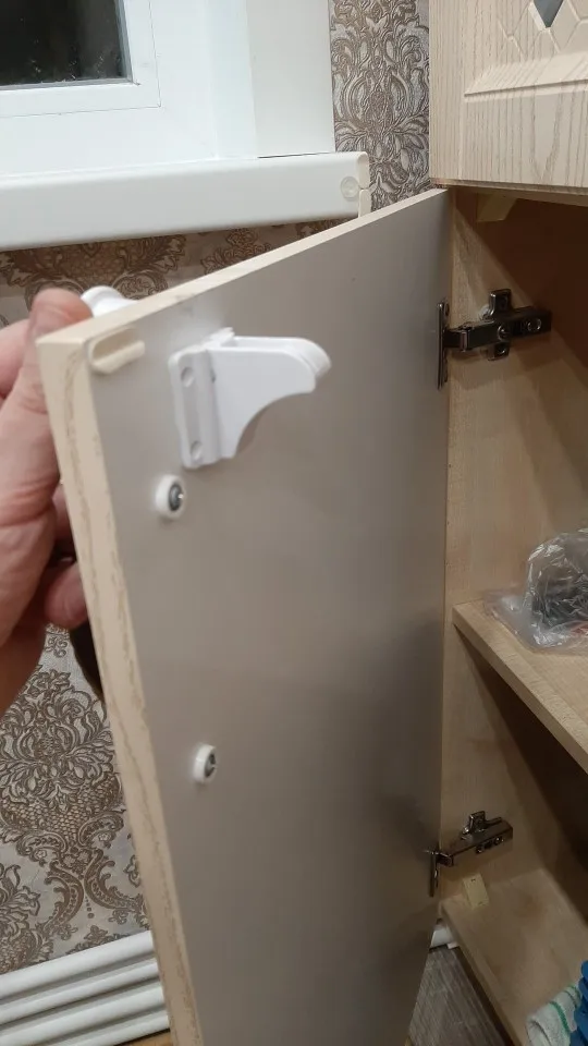 Очень быстро и лично в руки доставка, неожиданно, спасибо и сами крепления установила , липнет намертво, держит хорошо, надеюсь клей так и будет держать хорошо. В ящики немного на ощупь пришлось клеить , но держат , значит угадала с расположением )))