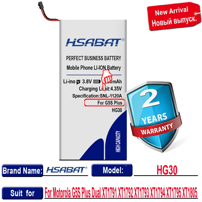Аккумулятор HSABAT HG30, 0 циклов, 4000 мА ч, для Motorola Moto G5S Plus, двойной XT1791, XT1792, XT1793, XT1794, XT1795, XT1805