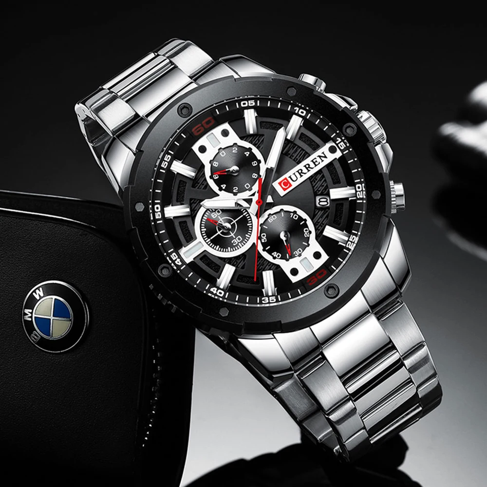 Часы наручные CURREN Мужские кварцевые, роскошные брендовые деловые армейские спортивные, с хронографом из нержавеющей стали