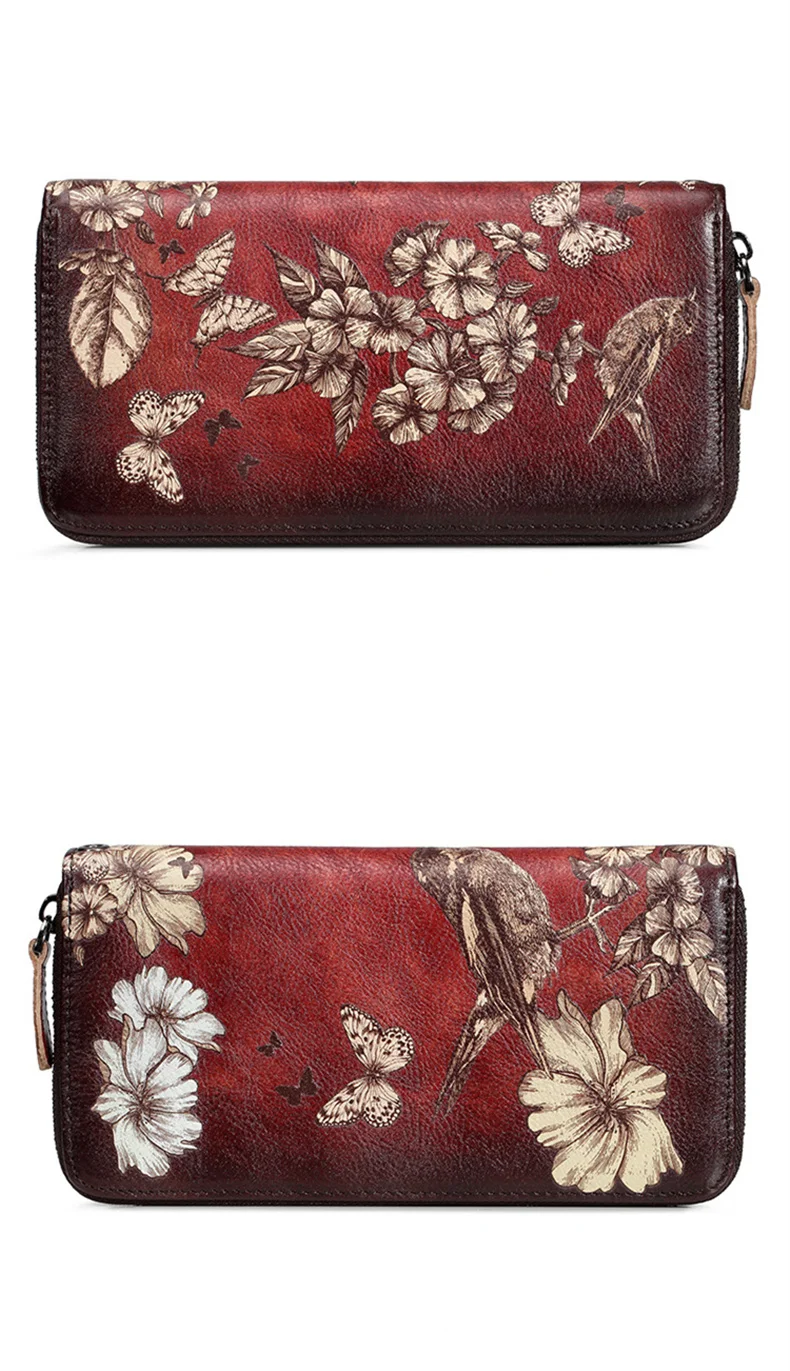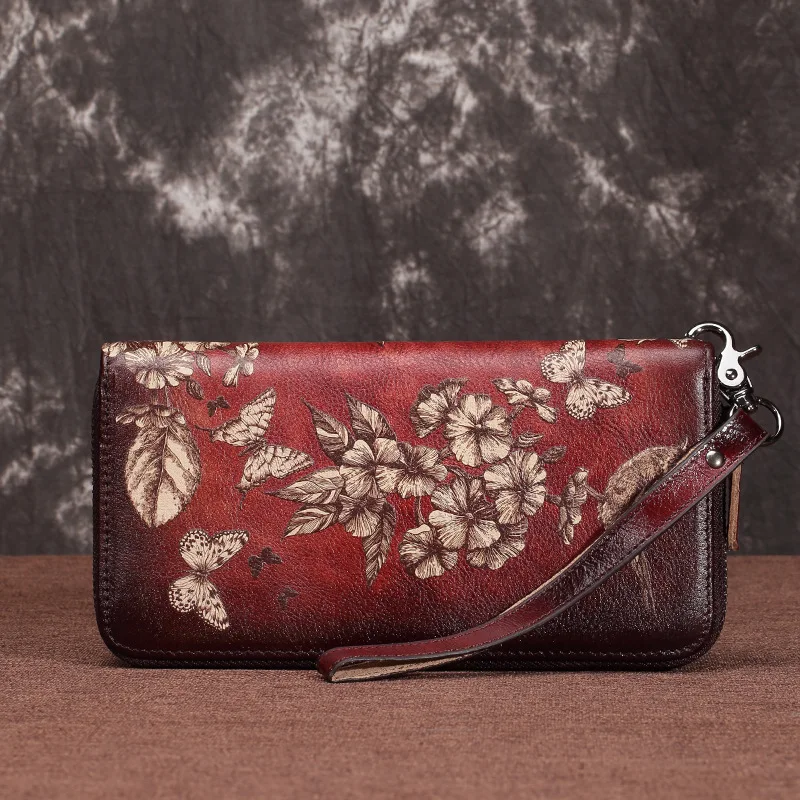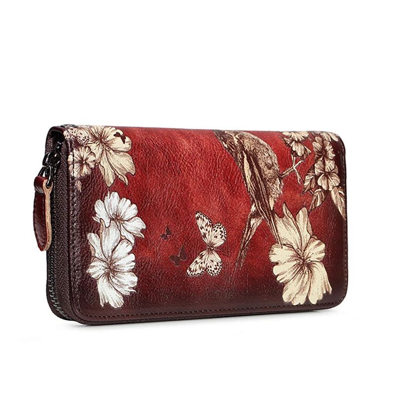 Женские кошельки из воловьей кожи SOUTH GOOSE, длинный клатч в стиле ретро, Дамские кошельки с цветочным принтом, сумочка для сотового телефона, кошелек для монет, сумочка для денег