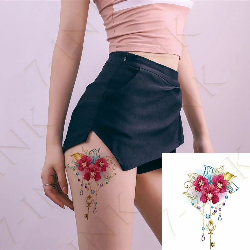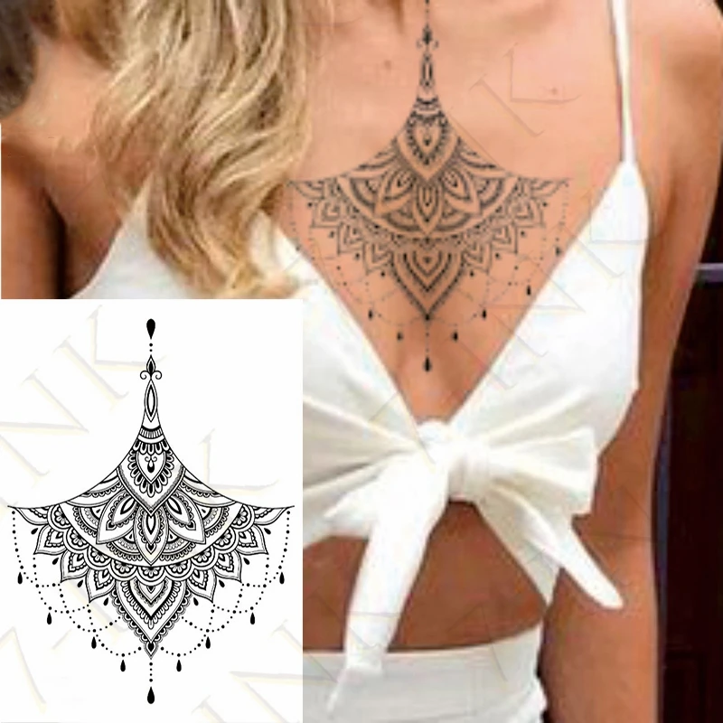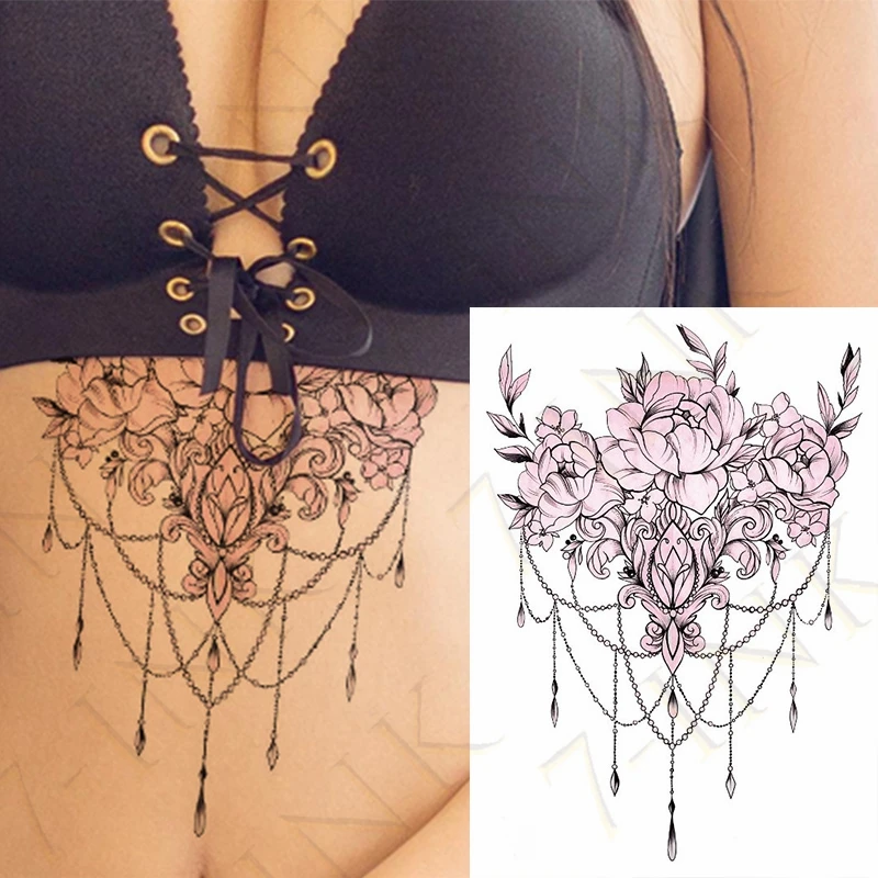 Временная тату-наклейка, сексуальный цветок, кружевная мандала, тату на грудь, талию, переводная искусственная татуировка, тату для взрослых