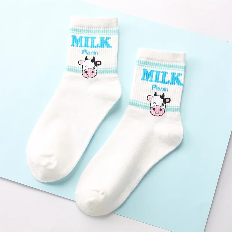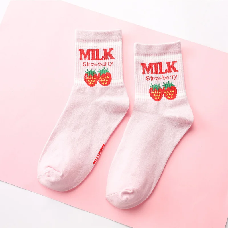 Kawaii из жаккардовой ткани с принтом клубники; Молочный розовыйбелый женский Носки японский смешные носки Харадзюку Носки Calcetines Mujer