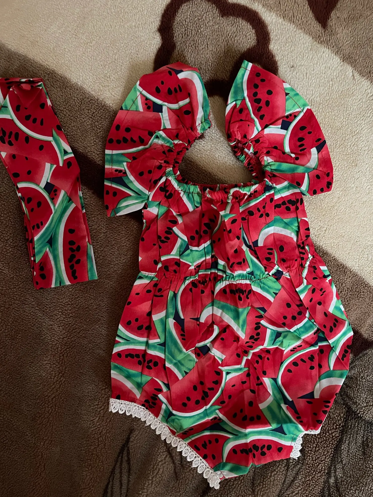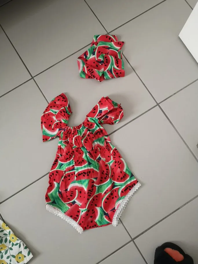 Ребёнку 5 месяцев, заказала на 12 мес, думала к лету будет как раз., но ошиблась. Все как на фото, очень красивое боди, одевается через ножки. Плохо что нет кнопок (неудобно будет менять подгузник) за такую цену- подарок