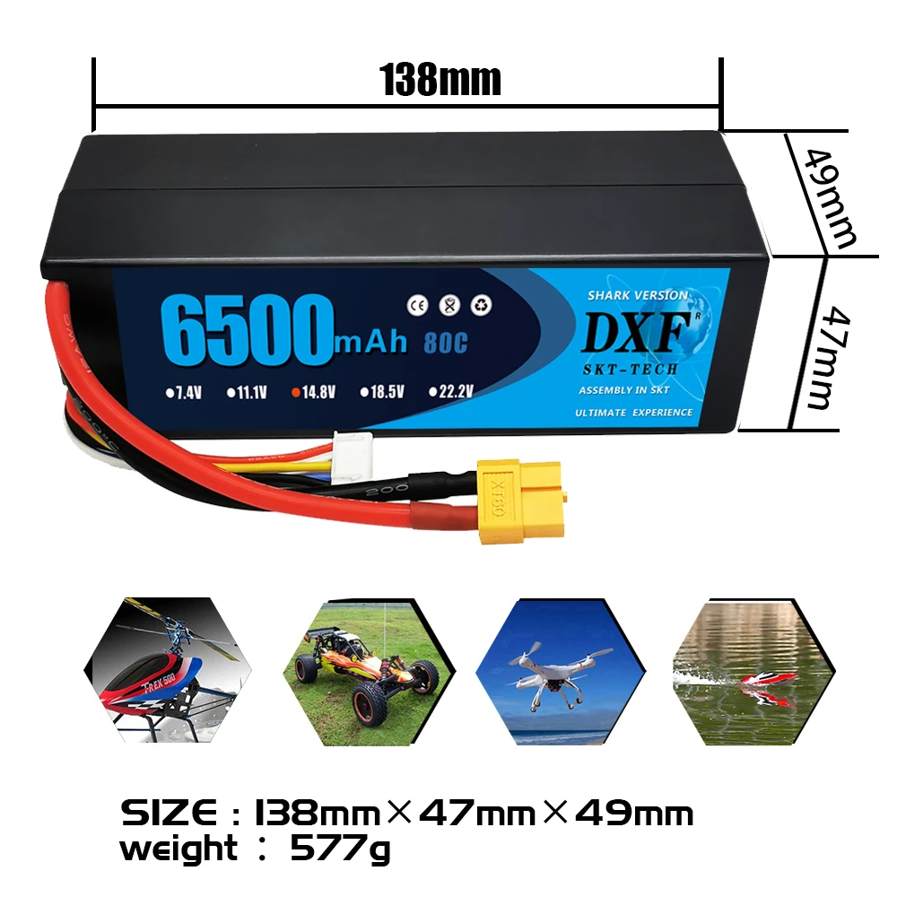 Жесткий чехол DXF POWER 6500 мАч Lipo 4S 14,8 в 80C 160C, литий-полимерная батарея для радиоуправляемого автомобиля, лодки, дрона, робота, FPV грузовика