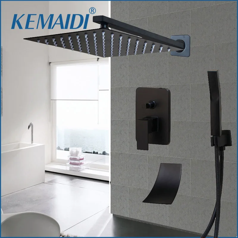 Матовый черный настенный квадратный смеситель для душа KEMAIDI, наб...