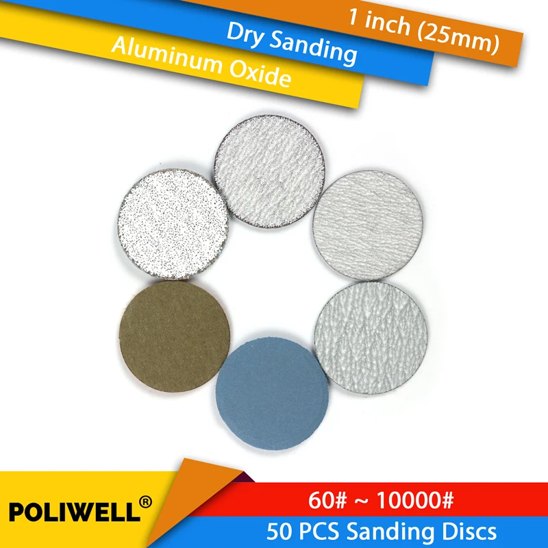 Наждачная бумага, 50 шт., 1 дюйм, 25 мм, абразивный материал 60 10000 Грит, оксид алюминия, крючок и петля, шлифовальная бумага, сухие шлифовальные диски, подходит для инструментов Dremel, полировка