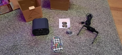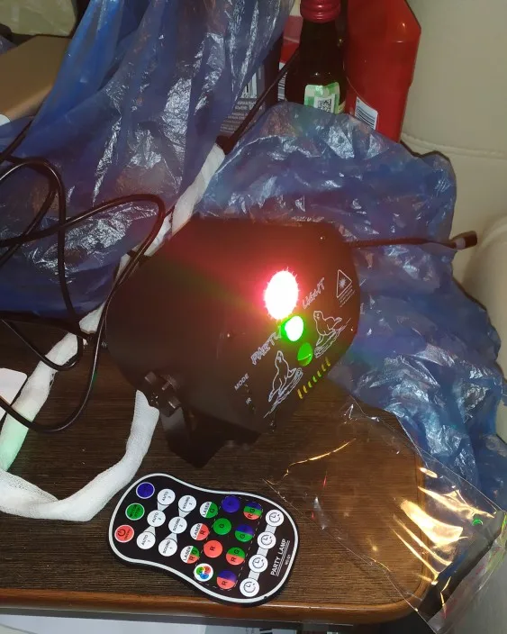 Такая маленькая коробочка, но светит очень хорошо. Единственное, на пульте 3 режима под музыку, а работает только 1.