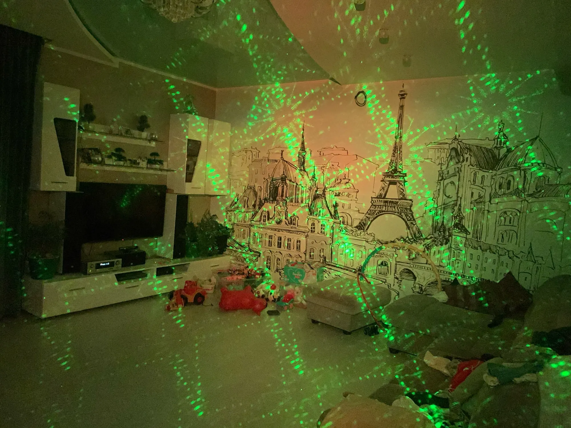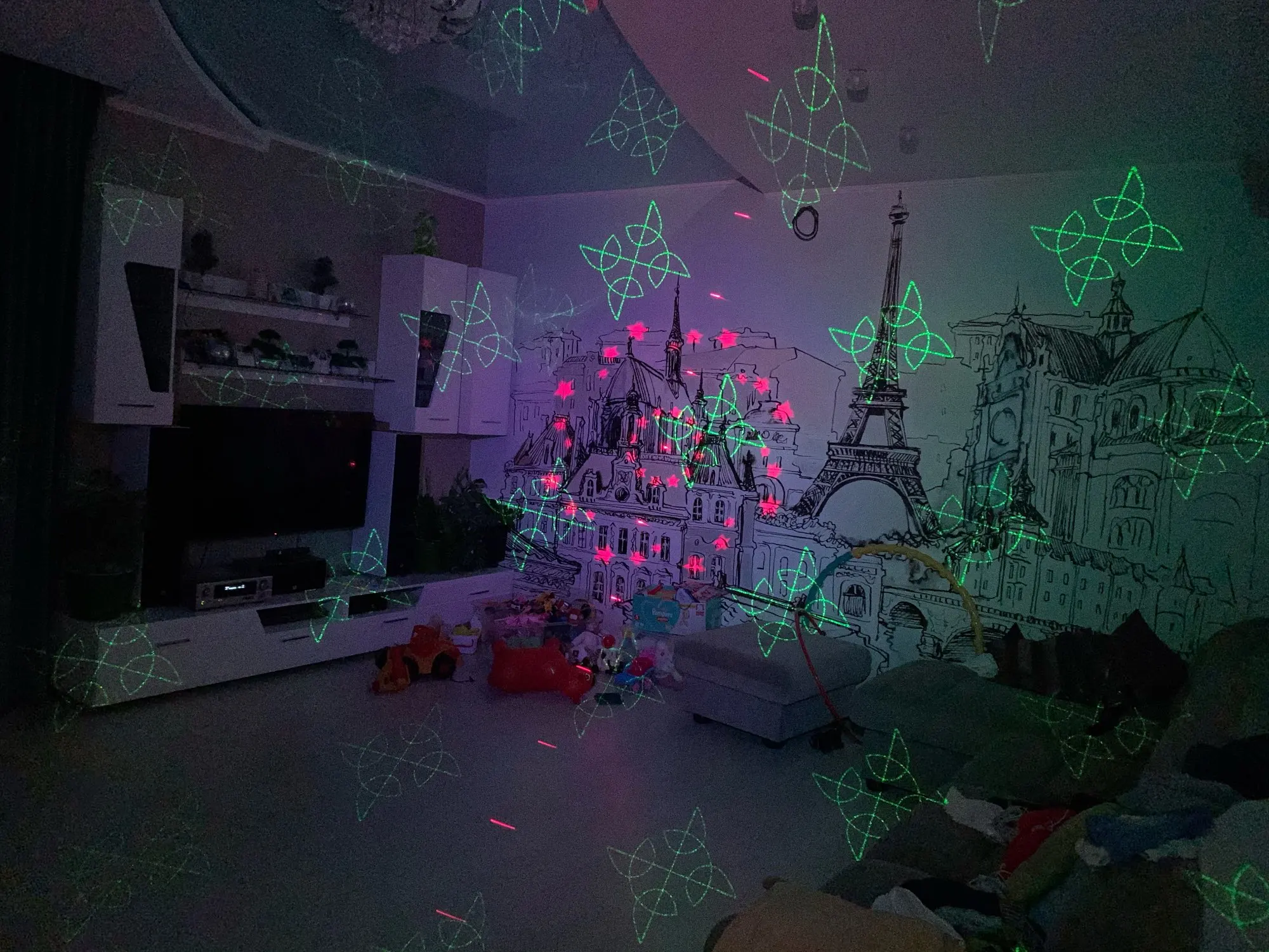 Благодарю за товар! Доставка в Тамбов чуть больше 2 недель. Упаковано просто в коробку и обычный спаянный пакет. Брал в подарок маленьким племянникам. Игрушка очень классная) Много режимов разных, есть микрофон, реагирует на звук - цветомузыка. Есть пульт, но без батареек. Написано что нужны CR2025 2 шт. Подошли CR3032. Светит лазер далеко. Скорее всего себе тоже закажу) Брал за почти 1333 р. Советую к покупке.