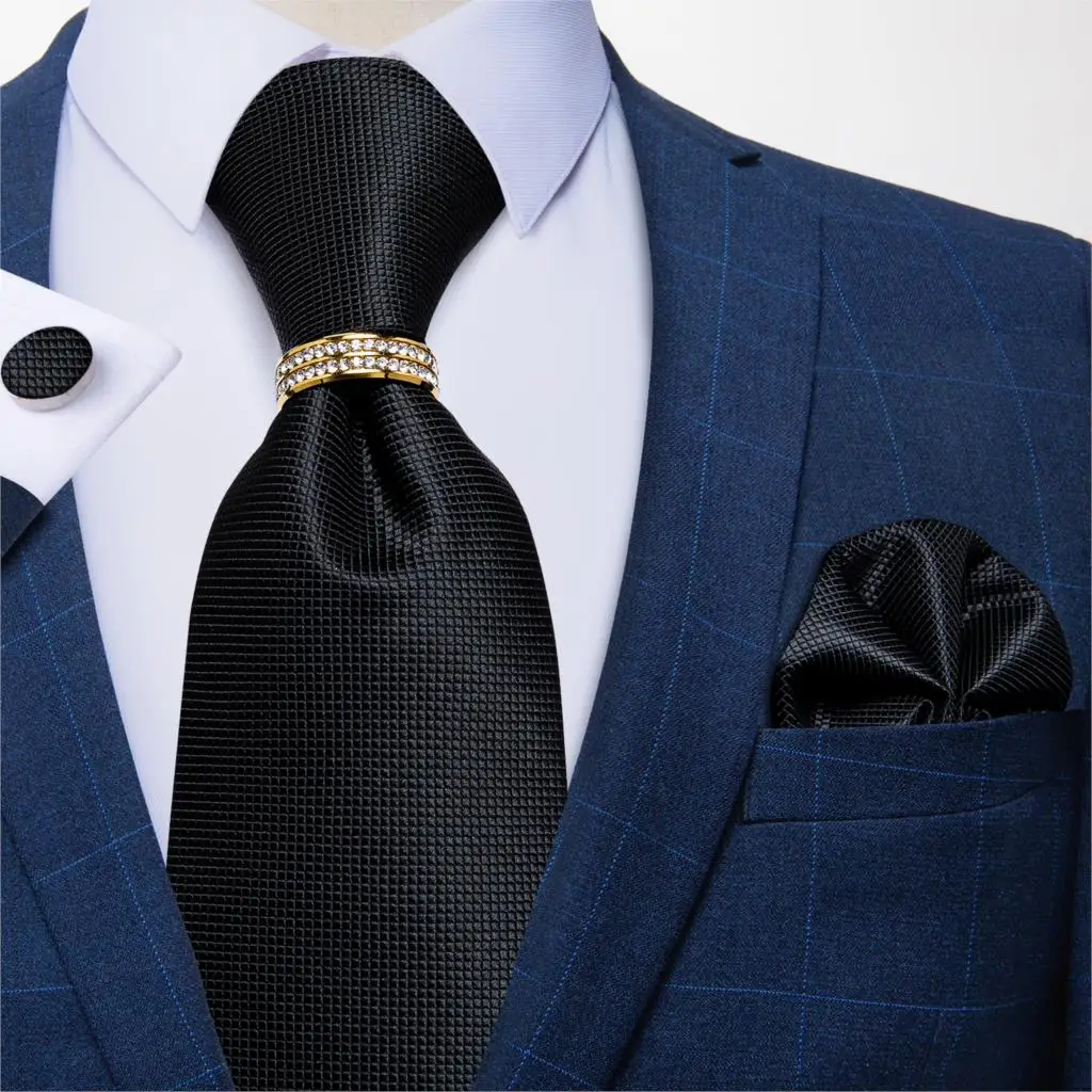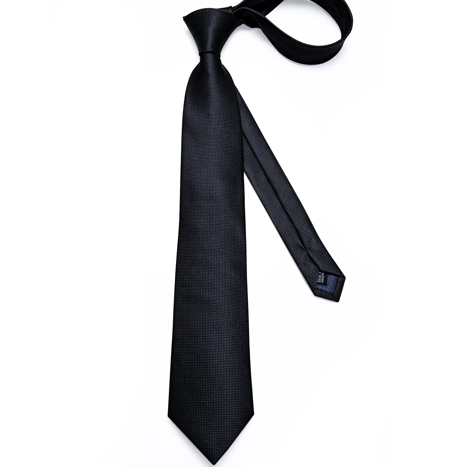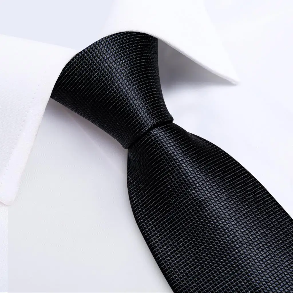 Мужской галстук черный однотонный Свадебный шелковый галстук для мужчин носовой платок запонки кольцо галстук дизайнерский модный галстук для вечеривечерние