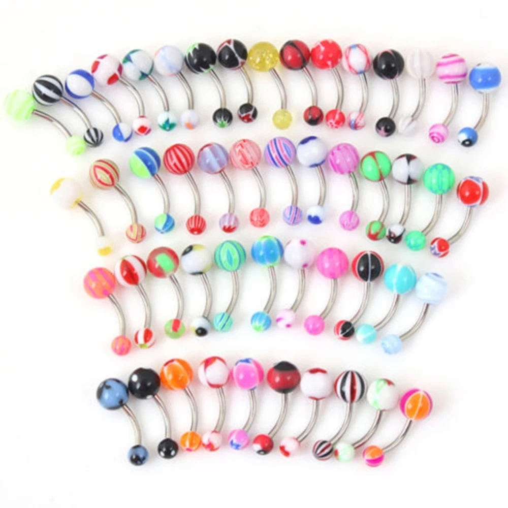 Пирсинг пупка из хирургической стали, с одним кристаллом, со стразами, 10 шт.лот