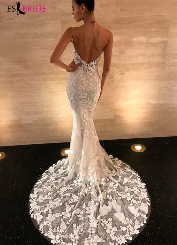 Женское вечернее платье-русалка, белое элегантное кружевное платье с аппликацией, для выпускного вечера, ES2650