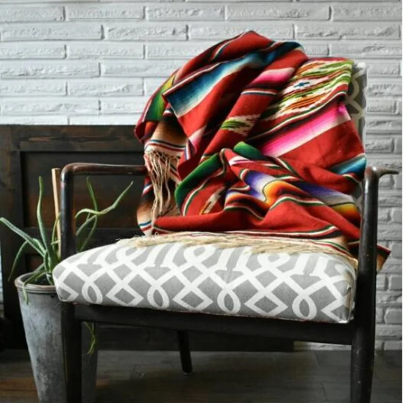 Покрывало в мексиканском стиле с радужными полосками, покрывало для...