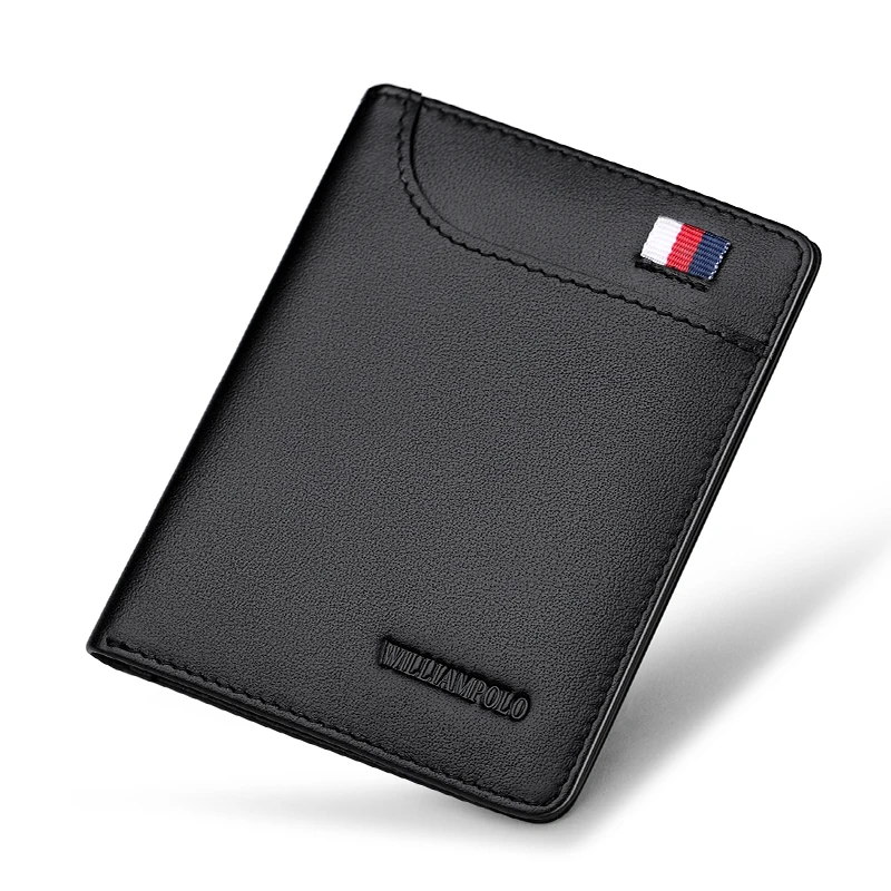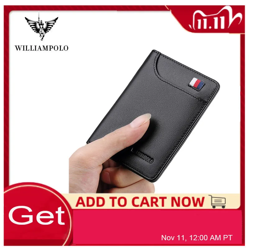Тонкий кошелек WILLIAMPOLO для мужчин, Женский бумажник из натуральной кожи, маленький минималистичный с передним карманом