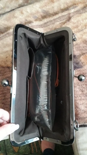 Чудесная сумочка!!! Небольшая, элегантная. Всё помещается. Внутри одно отделение, но есть три кармашка. Напоминает старинный кошелёк.))) Такую и хотела.