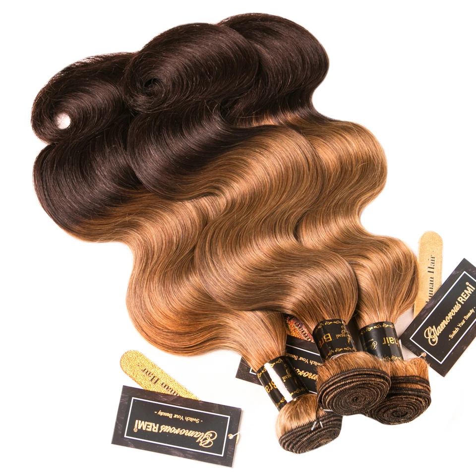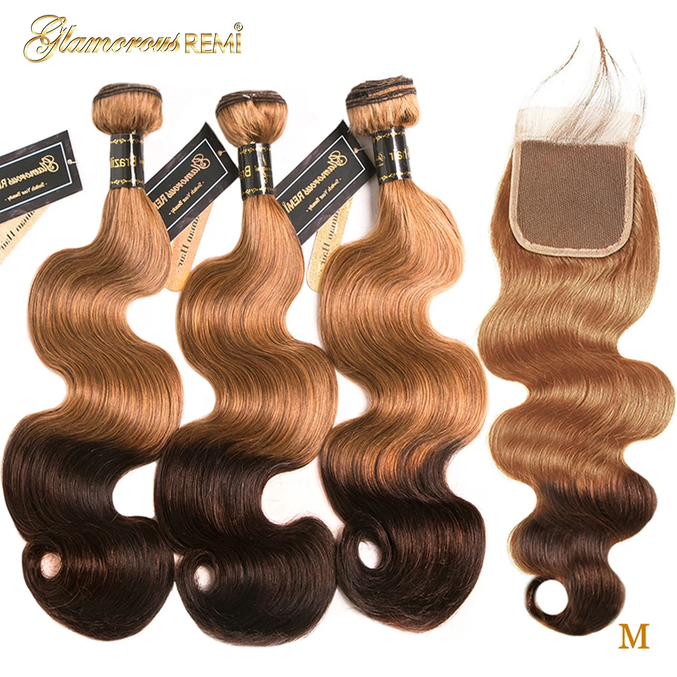 Бразильские волнистые человеческие волосы, пучки с кружевной застежкой, Омбре, Funmi, золотисто-коричневые, T274, пряди с волнистыми волосами для наращивания