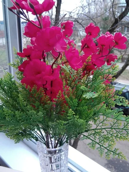 Красивые веточки, но с расстояния. Вблизи конечно видно, что не настоящие. В принципе заказом довольна. До Амурской области доставка 2,5 месяца. С продавцом не общалась.