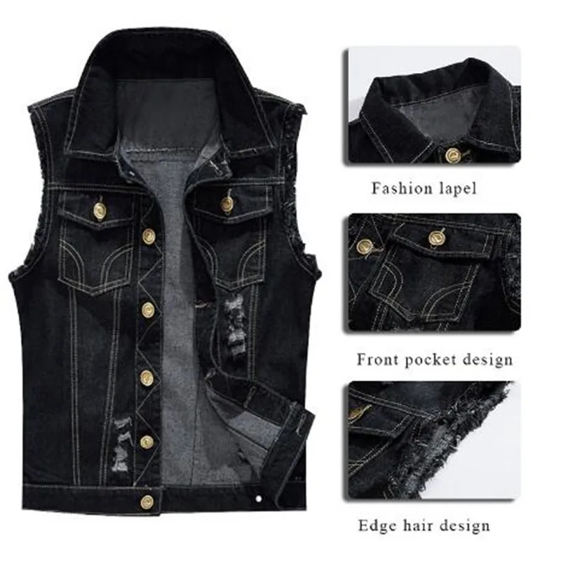 Узкие мужские джинсы куртка без рукавов жилет мужской размера плюс 6XL черный джинсовый жилет мужской ковбойский уличный жилет Мужская куртка s