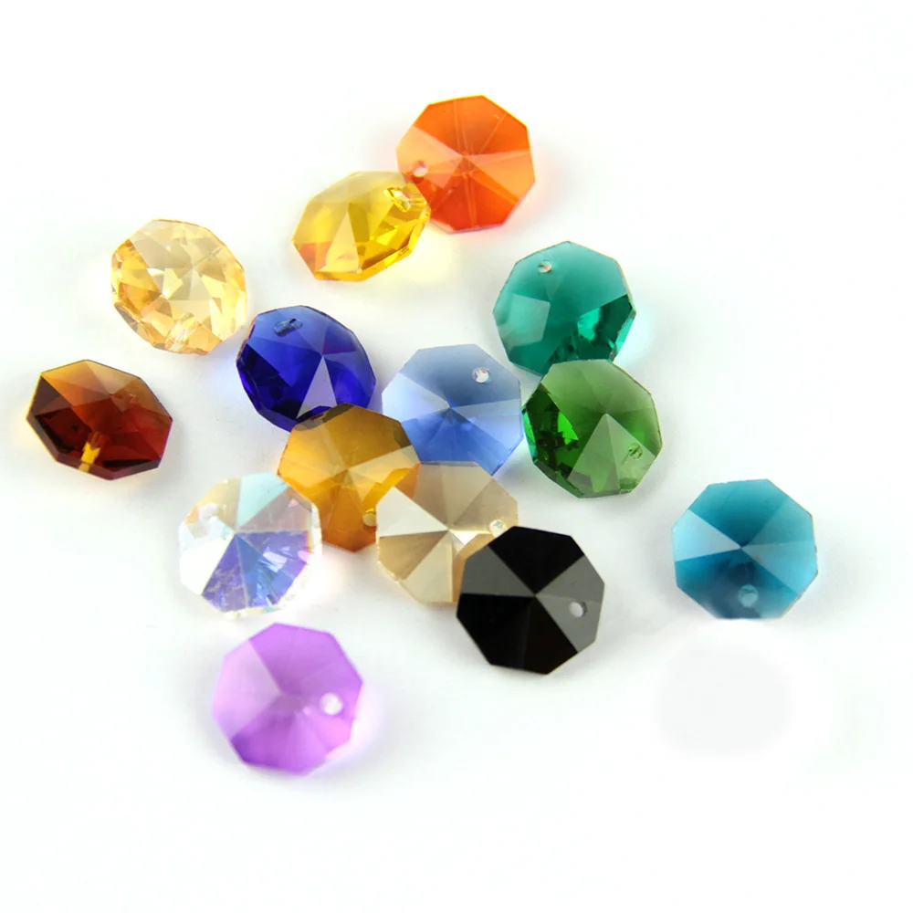100 шт.1000 шт. 14 мм Хрустальные стеклянные призмы Восьмиугольные ...