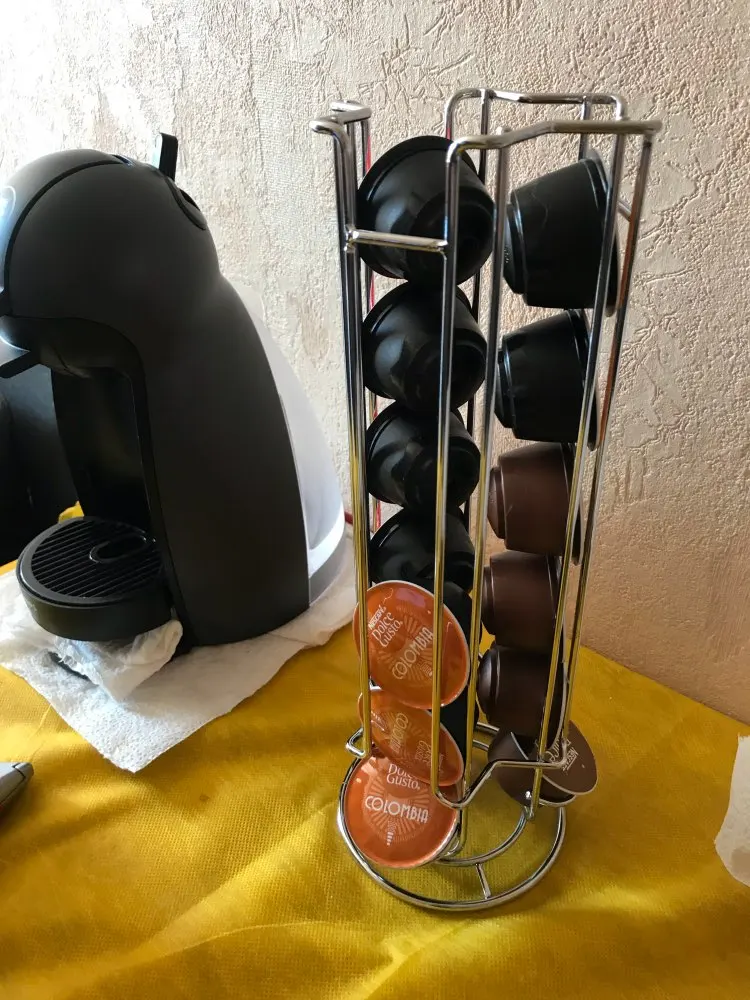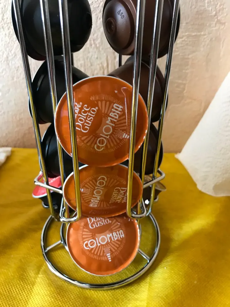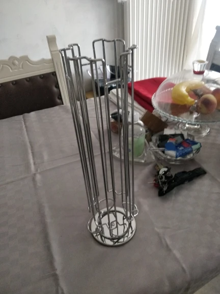Этот держатель для кофе-отличный маленький держатель для моих кофейных капсул. Мне очень нравится то, что высокий и узкий. Он имеет небольшой размер и занимает очень мало места на моей кухонной столешнице. Очень прочный, он также легко вращается. Настоятельно рекомендуется.