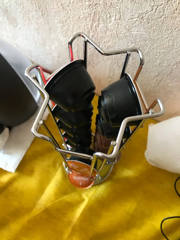Очень нравится этот держатель для капсул, выглядит очень хорошо на кухонной прилавке. Очень легко загрузить его с новыми стручками, просто выровняйте их и поместите в них. Рекомендую этот товар, выглядит как качественный, и он очень функциональный и отлично выглядит рядом с кофемашиной, получает много комментариев!