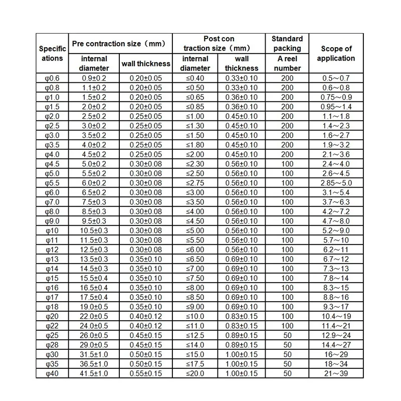 Коэффициент усадки: 2:1 (будет максимально сокращаться до 1/2 его поставляемого диаметра)
