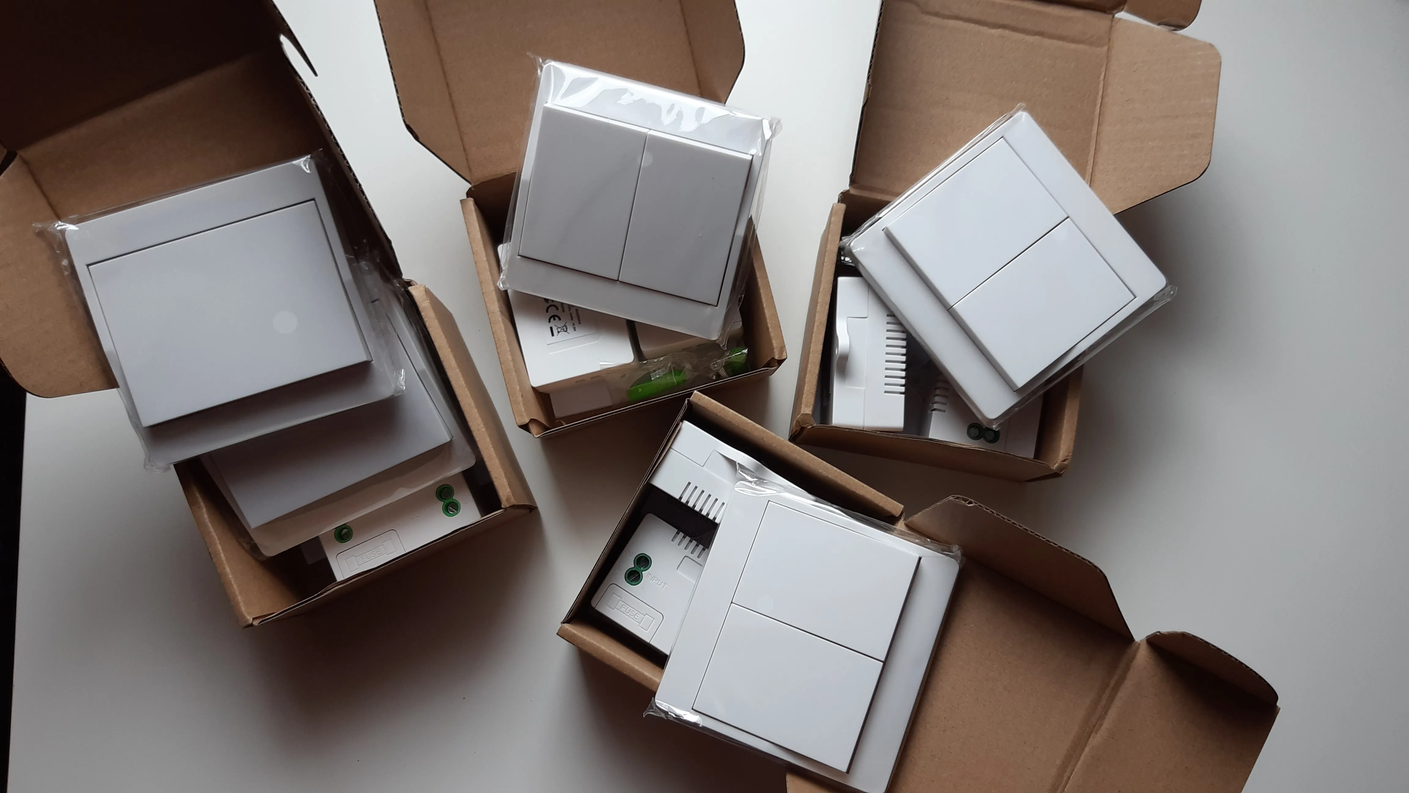 Доставка в Москву за 2 недели, комплект полный, монтаж простой, очень качественно сделано - вопросов к продавцу нет. Но есть замечание по товару. Я взял две пары блоков и выключателей, установил в соседних комнатах, в итоге блоки путаются и свет включается не там, где надо. Предположение, что сам виноват и надо заново сопрячь правильно устройства, не работает; логики в работе выключателей нет: иногда оба блока включаются от одной кнопки, иногда только один и не ту лампу, а иногда вообще ни одного, но чаще обе кнопки видят только один блок. В общем, минус 1 звезда, т.к. по одиночке комплект работает отлично, но сделать большую систему в одном доме у меня не получилось.