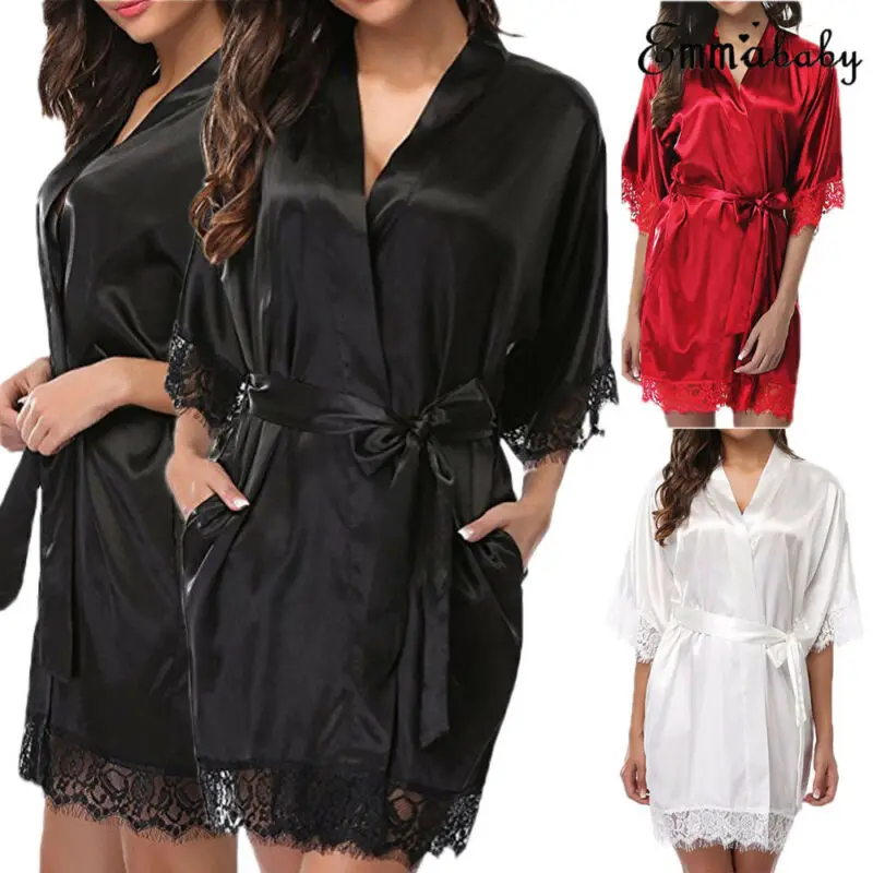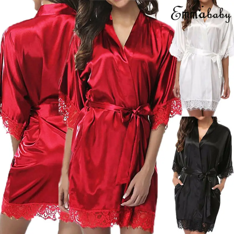 Модная женская пикантная Ночная сорочка с глубоким V-образным вырезом, атласная шелковая ночная сорочка, кружевная ночная сорочка, платье для сна 3G17