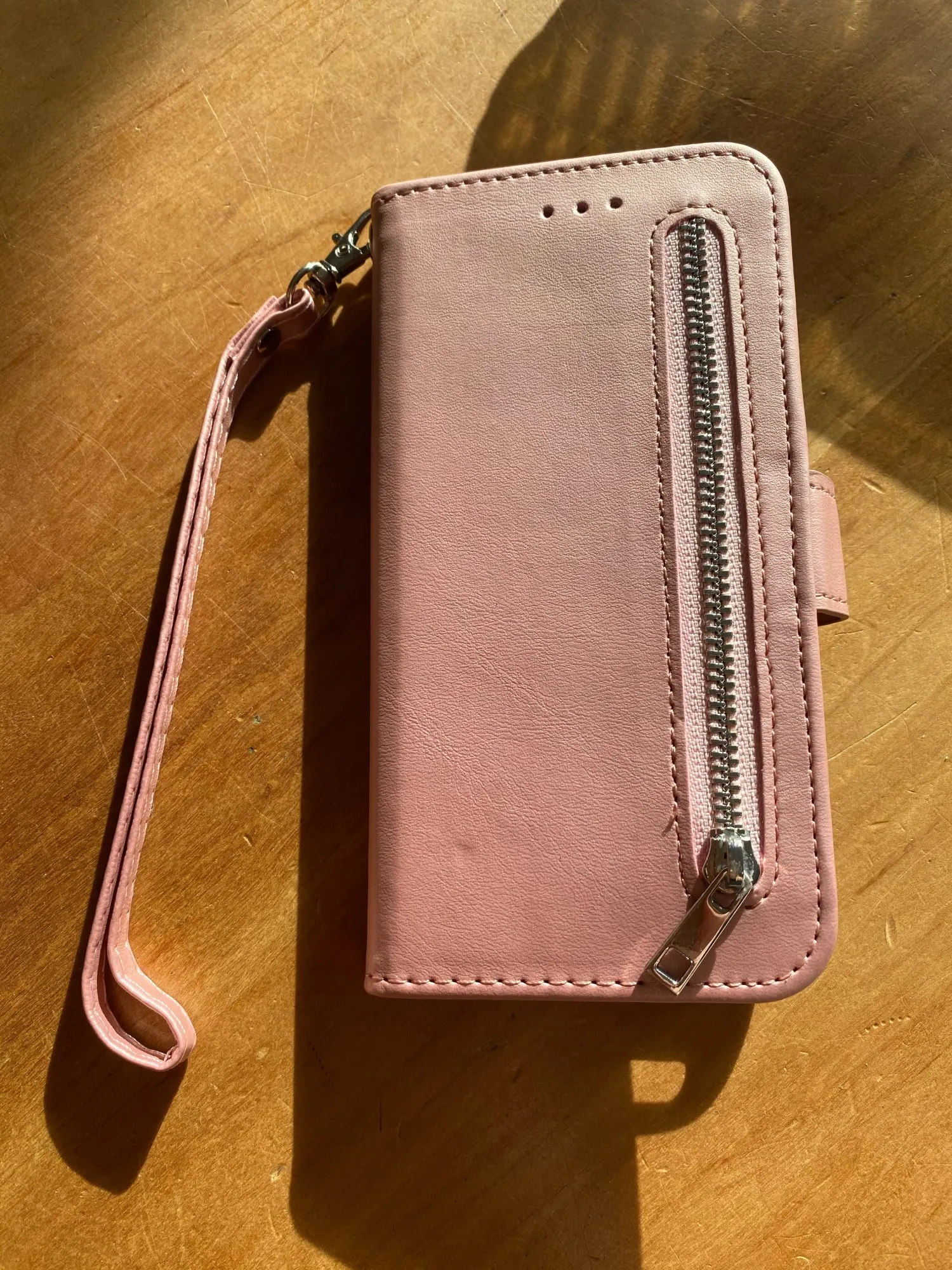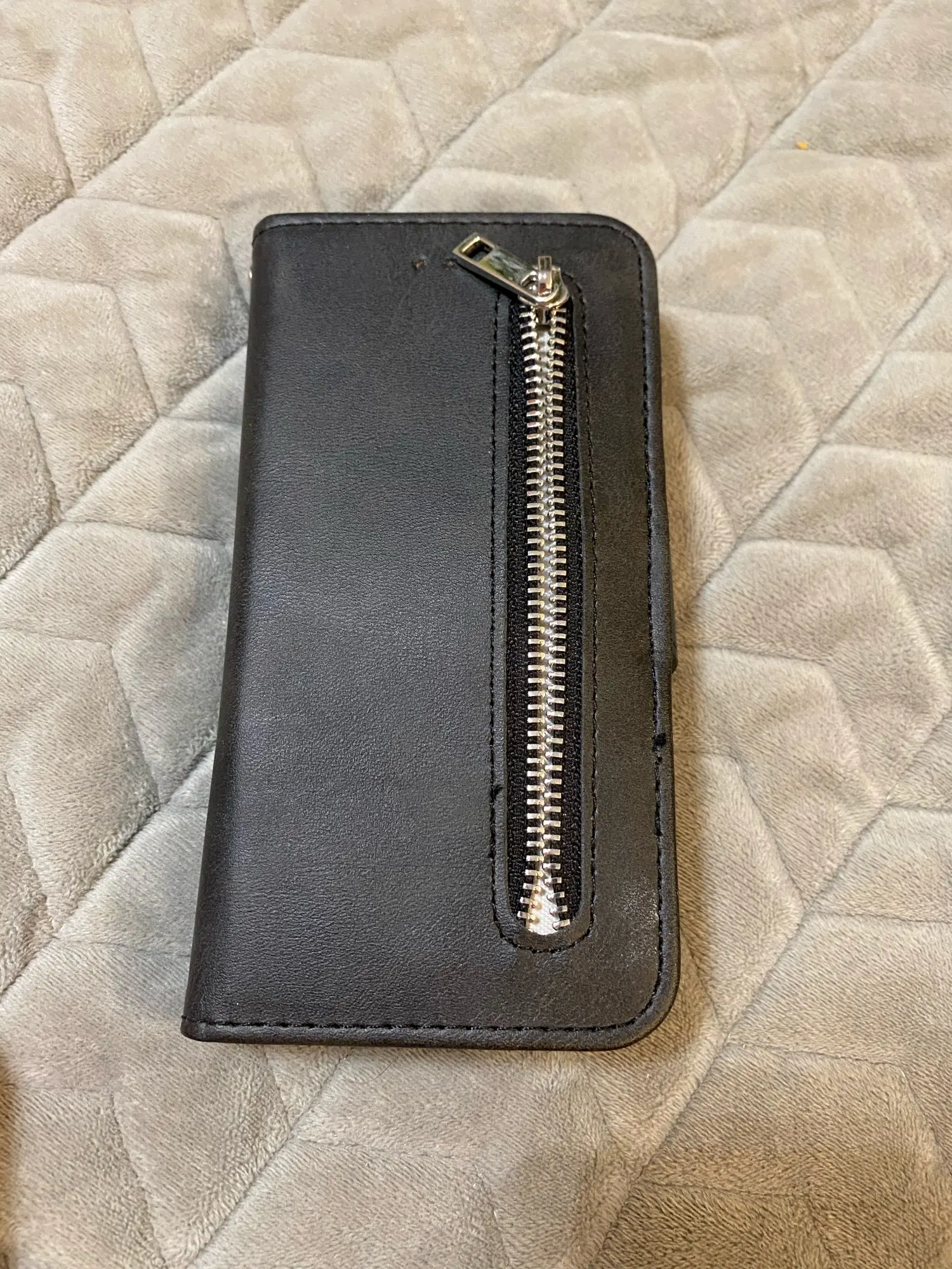 Качественный, кожаный чехол для телефона. Строчки ровные, без торчащих ниток и брака. Молния заклеена скотчем для транспортировки. Удобный и очень красивый чехол. Застежка магнитная, держит хорошо. Места для карточек и денег есть. Ремешок на руку. Продавец супер отправил быстро, запаковано хорошо. Советую продавца и чехлы. Буду заказывать у него ещё