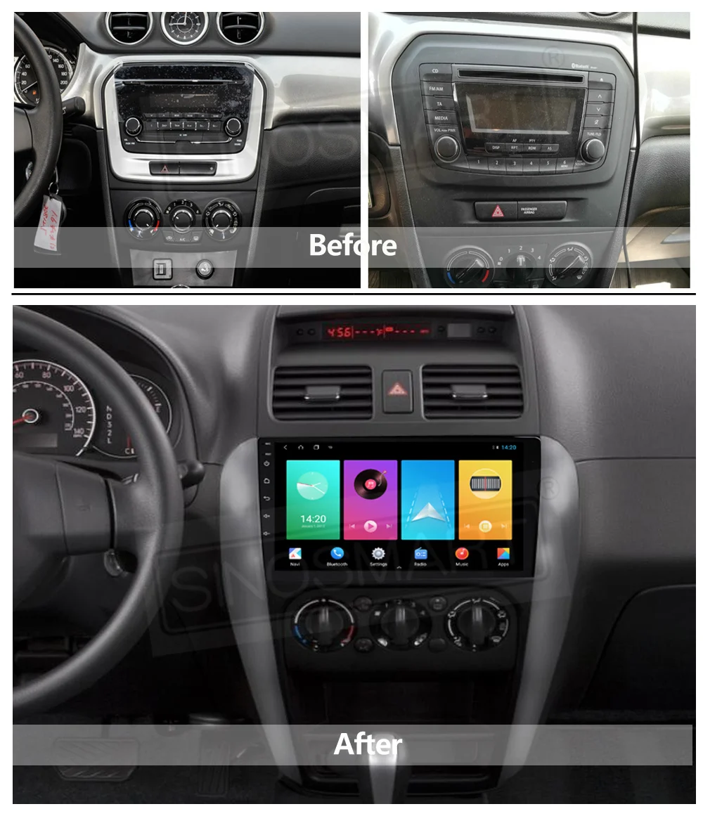Примечание: вся информация о нашей ОС и оборудовании-это реальные данные. Вы можете использовать приложение CPU-Z, чтобы проверить его. Пожалуйста, имейте в виду, что на рынке много поддельной информации о ОС.9 дюймов 2.5D QLED экран 2G/4G RAM Автомобильный GPS плеерДля SX4 2006-2012 (без canbus)Для Vitara 2016 (без canbus)Поддержка большинства популярных приложений, если какое-либо приложение не может работать, пожалуйста, свяжитесь с нами в любое время для любой ошибки, мы готовы улучшить ^_^Установка очень проста, если Вы хороши в DIY. Просто выньте свой автомобиль оригинальное радио, поставьте на новый экран, подключи и играй, не нужно делать какие-либо провода резки. Пожалуйста, используйте камеру телефона для сканирования qr-кода сервисной карты, чтобы загрузить руководство по установке и эксплуатации.