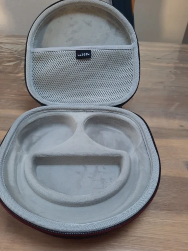 Чехол немного разочаровал - он не достаточно жёсткий. Если на него случайно сесть, то он промнётся, и не защитит наушники. Если кому-то нужен жёсткий чехол, этот не подойдёт. Поэтому минус звезда