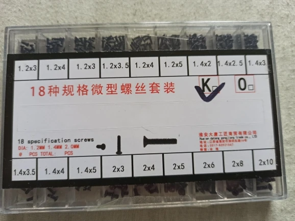 все пришло согласно описанию, но к сожалению мне нужны были винты где то 1.6-1.8 в диаметре. мой косяк, но зато теперь целая коробочка разносортных винтов будет, может куда пригодится )) такие хрен где ещё найдешь. кстати если полезно кому то будет - брал для видеокамеры Panasonic hc-v760, не подошли)
