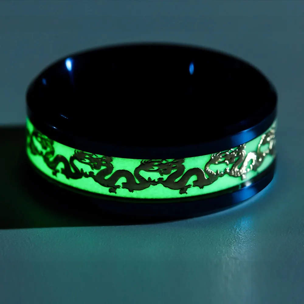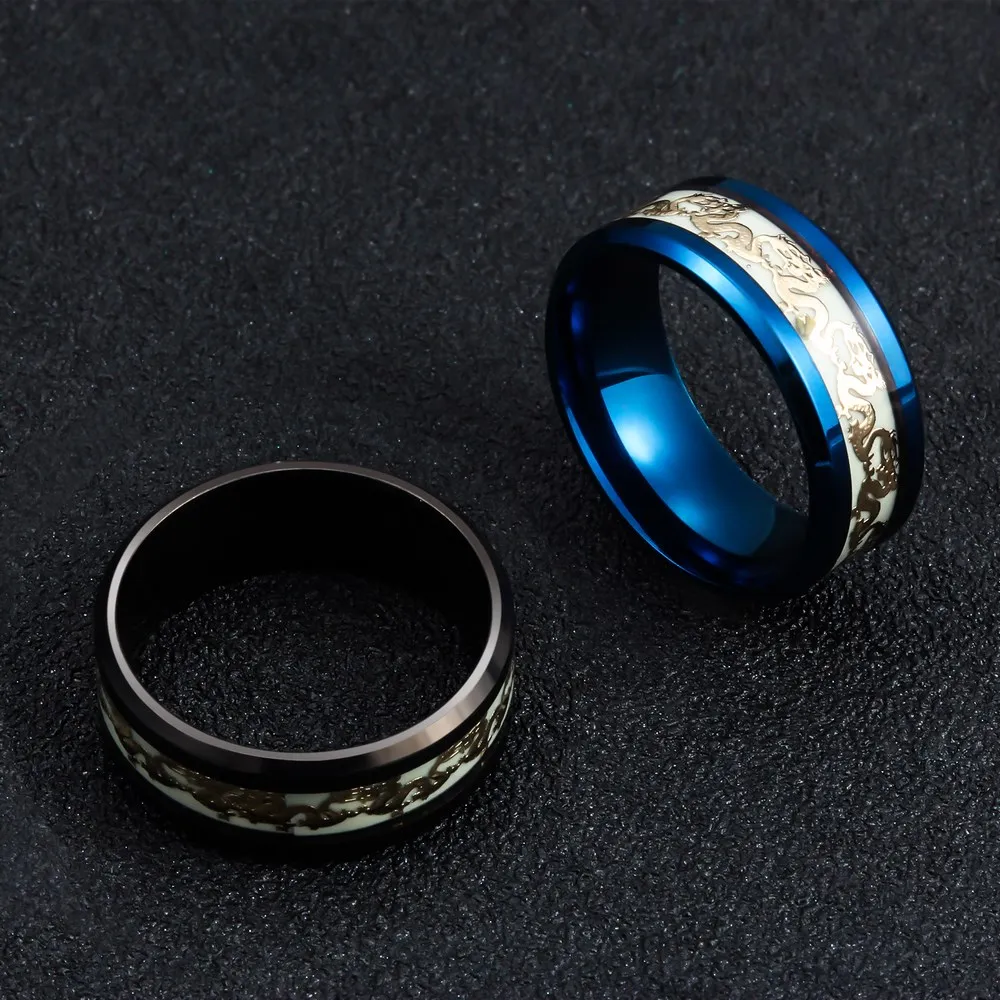 Светящиеся Кольца с драконом для мужчин, Черное золото, синий цвет, нержавеющая сталь, женские кольца, трендовые, светится в темноте, мужское кольцо, ювелирное изделие