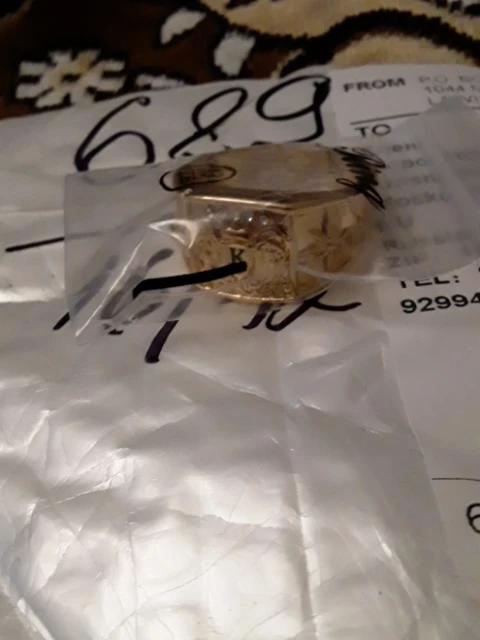 Пришло практически быстро, кинули в почтовый ящик, естественно отличается от картинки, но этот метал ближе к золоту,многие и близко не похожи, но конечно от золото отличается, на фото не так заметно, разница, но в реальности заметно, если рядом золото, идёт сравнения., стоит проба.)))спасибо.