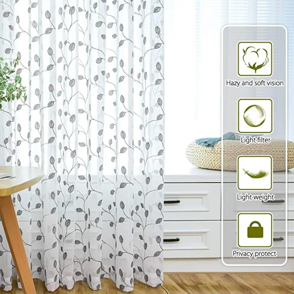 Тюлевые занавески с вышивкой, для гостиной, Современная Тюлевая штора с листьями и цветами, для спальни